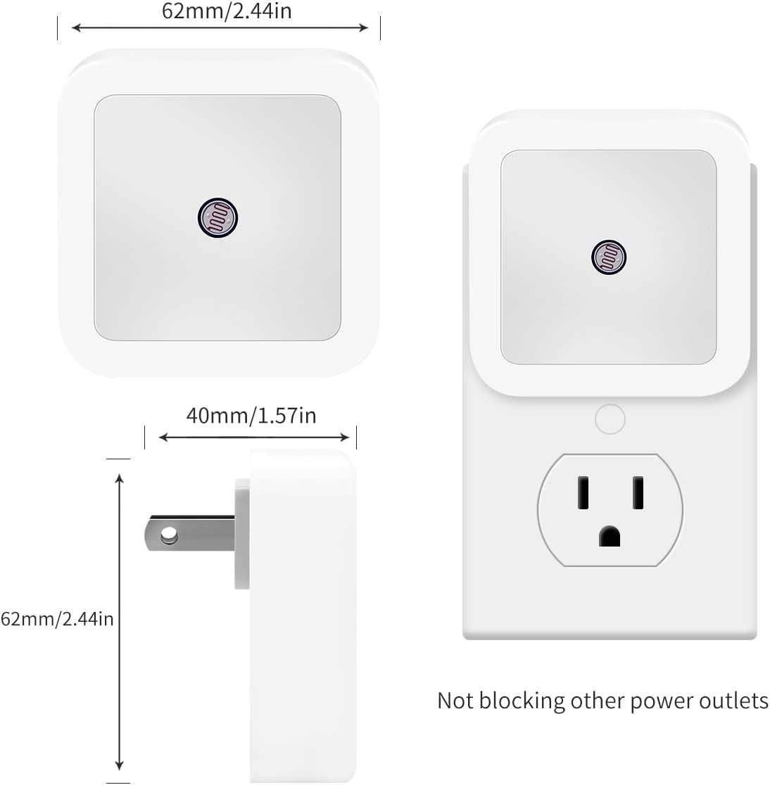 LED night light Diffused light ring emitting just right amount of light without being too bright. Nightlights Sensitive light sensor detecting ambient light level automatically. Easy to install, night light plug into wall outlet and the light will do its work perfectly.Widely application for kids adults bedroom bathroom stairway hallways kitchen, compatible for not only different place in the house, but also for different countries during travel.