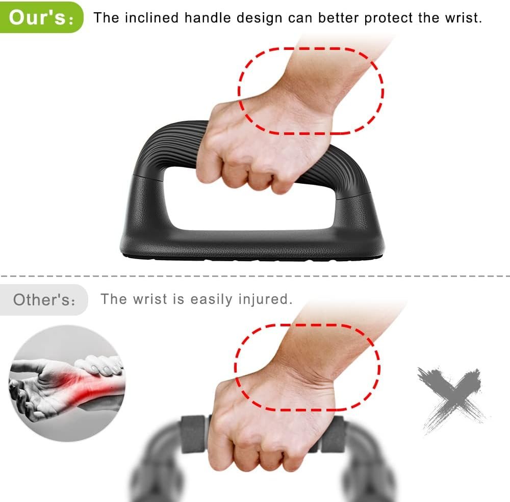 Comfortable Handle: The handles of push-ups are made of high-quality soft plastic, protect your hands, it’s not easy to get calluses. The diameter is 1 3/5 inches, and the grip is comfortable and ergonomic.