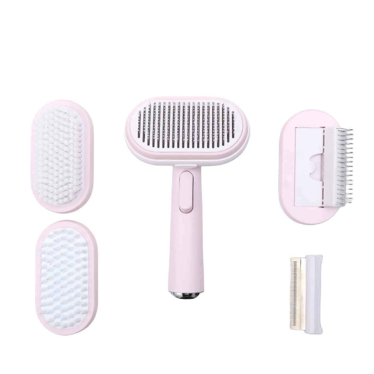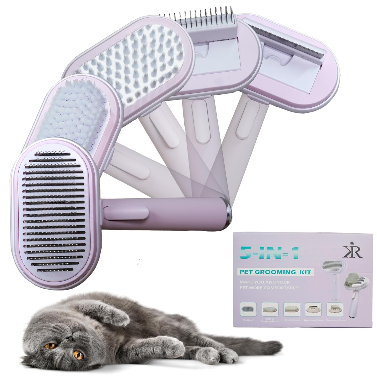 Variety of Brushes: A five-headed cat comb offers various brush tips for different types of fur and skin conditions of your cat. You can choose the brush head that suits your cat’s fur structure and skin condition. For instance, wide-toothed heads can be used for long-haired cats, while finer-toothed heads may be preferred for short-haired cats.Reducing Shedding: The five heads can reach deep into the fur to loosen and reduce shedding. This helps control the spread of fur around your home and manage excessive shedding of your cat.Massaging Effect: Some heads gently massage your cat’s skin, promoting blood circulation. This can help maintain your cat’s skin health and contribute to healthier and shinier fur.Deep Cleaning: The comb can effectively clean your cat’s fur from root to tip, removing dead fur and dirt that may accumulate under the skin, making your cat more comfortable.Comforting the Cat: When used correctly, the comb’s massaging effect can help relax your cat and reduce stress when you regularly groom its fur.