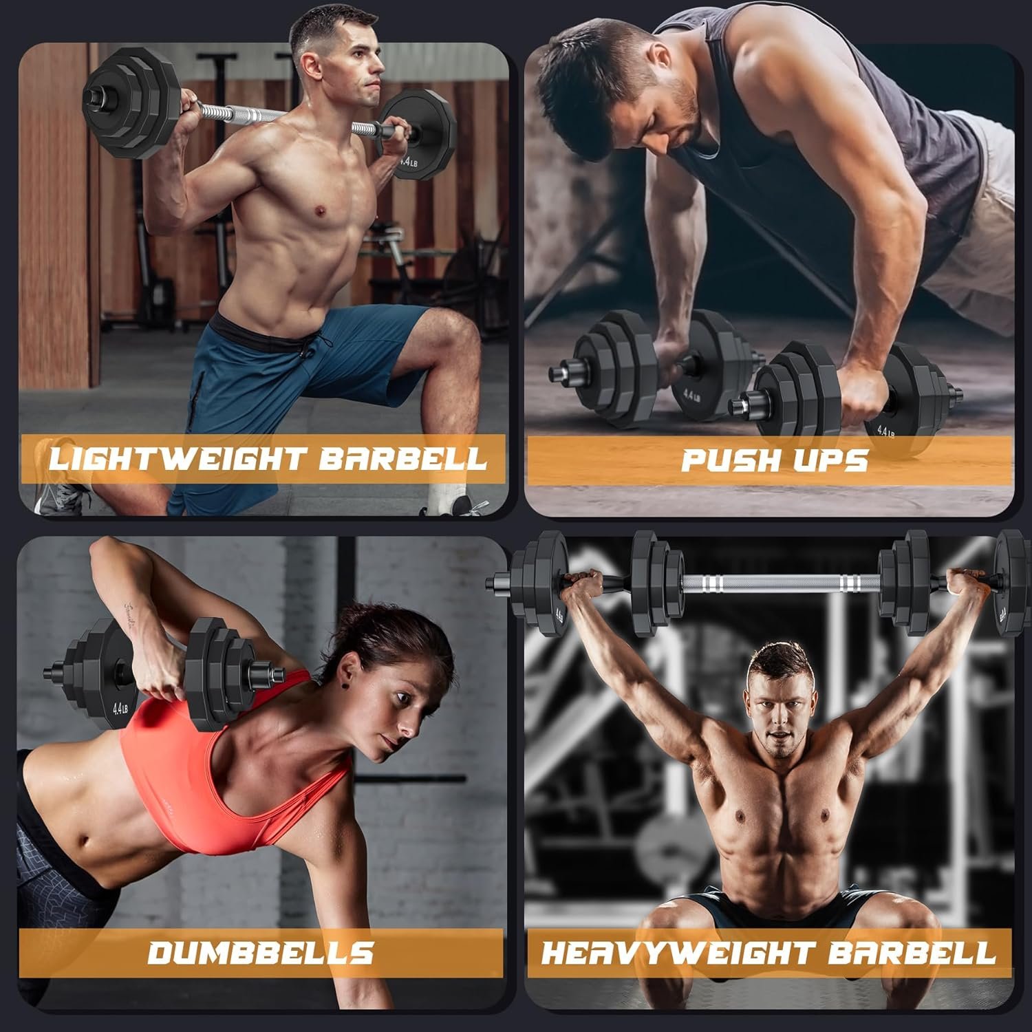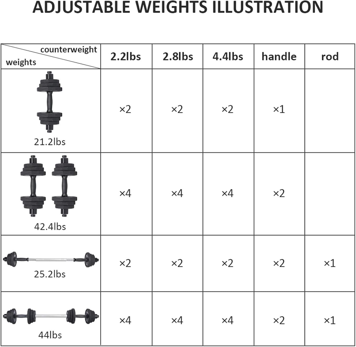 More Adjustable Weights Dumbbells Set Options: With a wide range of weights from 6.8lbs to 44lbs, these dumbbell set can be assembled as a barbell, allowing you to adjustable your weight to meet your training needs.Fitness dumbbells sets for women men.