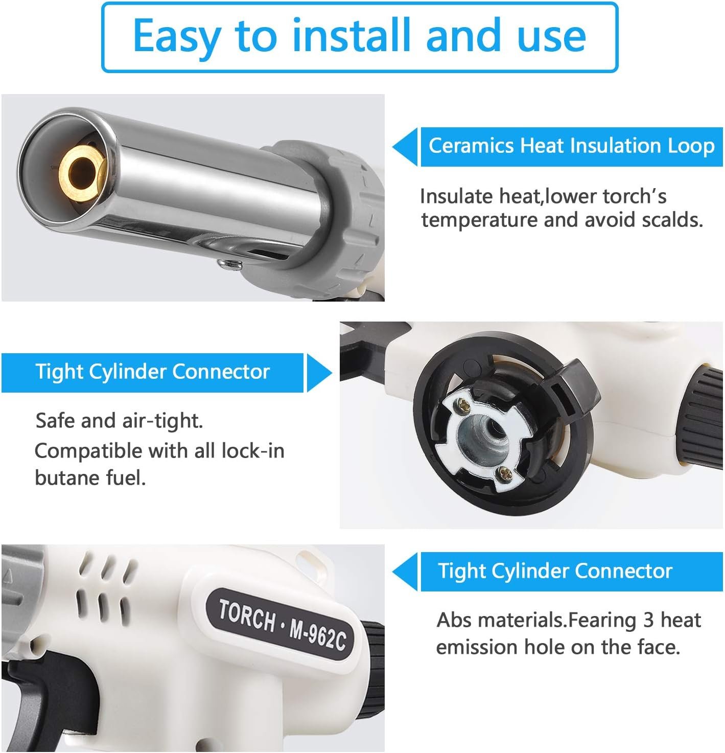 Professional Quality Food Torch Lighter – Temperature can reach to 1300°C / 2500°F to meet various needs,you can choose the different flame according to your requirement. ( Butane Gas Not Included )!