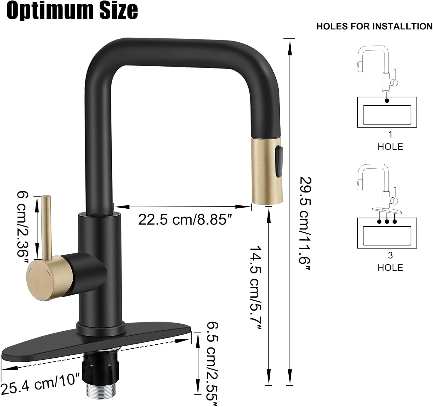 [Easy Installation]-Designed to fit single-hole or 3-hole kitchen sink. Everything you need is together in one box, including an optional escutcheon for 3-hole installation and 2 supply lines. Installation instruction included.