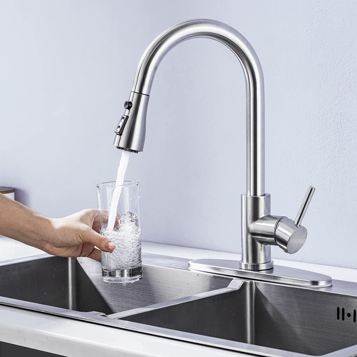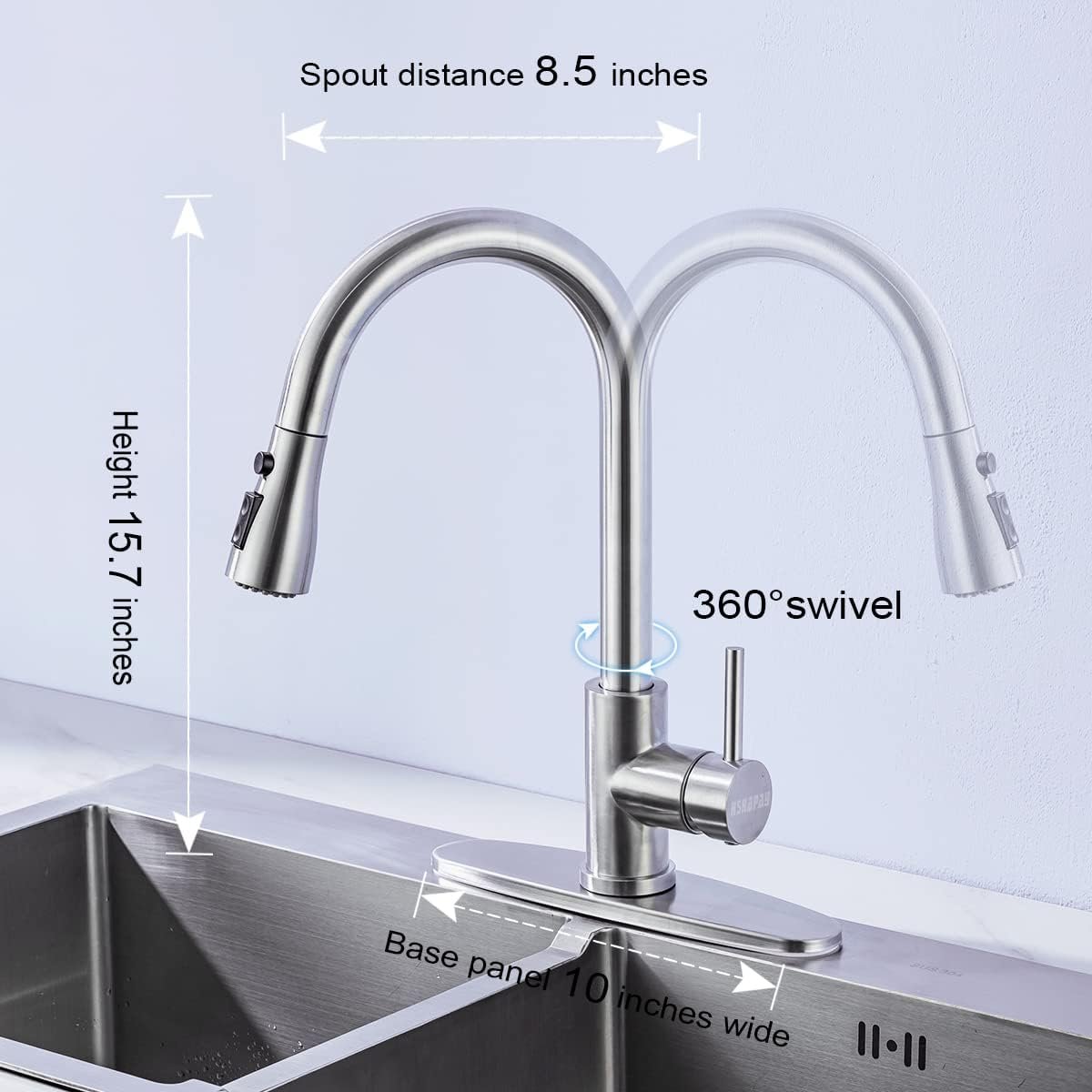 ✔【Safety and durable kitchen faucet】:The kitchen faucet is made of durable high-quality Lead-free stainless steel,Safety and durable