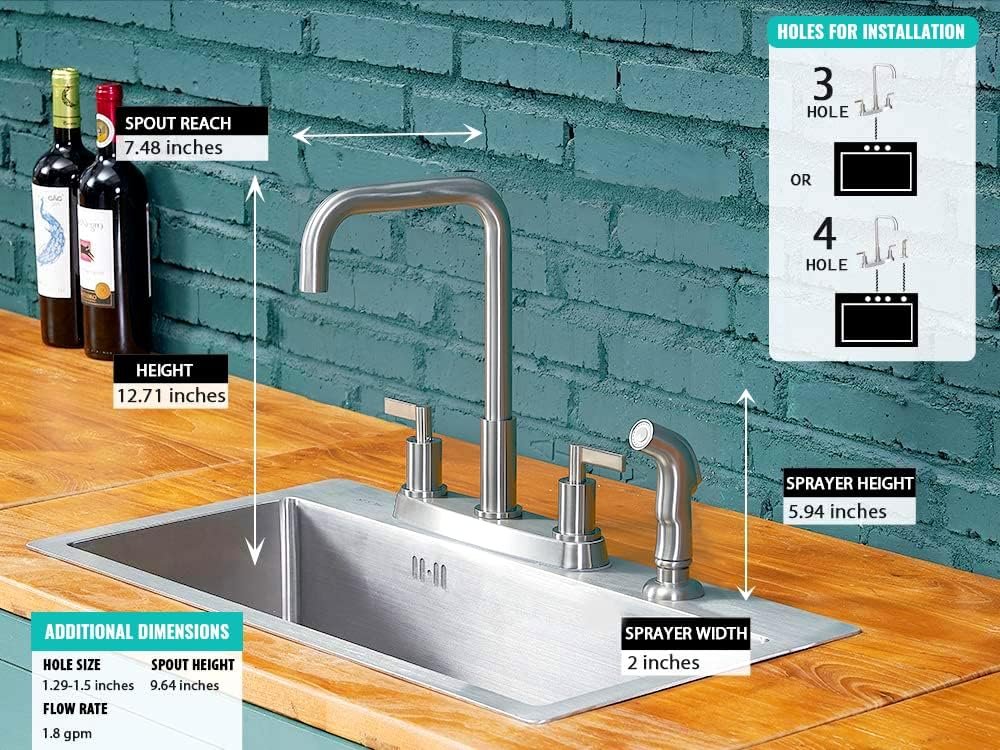 Overall height: 12.71″; Spout Height: 9.64″, Spout Reach: 7.48″. Faucet will come with all the mouting hardware, 3/8″ H & C water hoses includ, you can diy your installation without a plumber to save money and time.