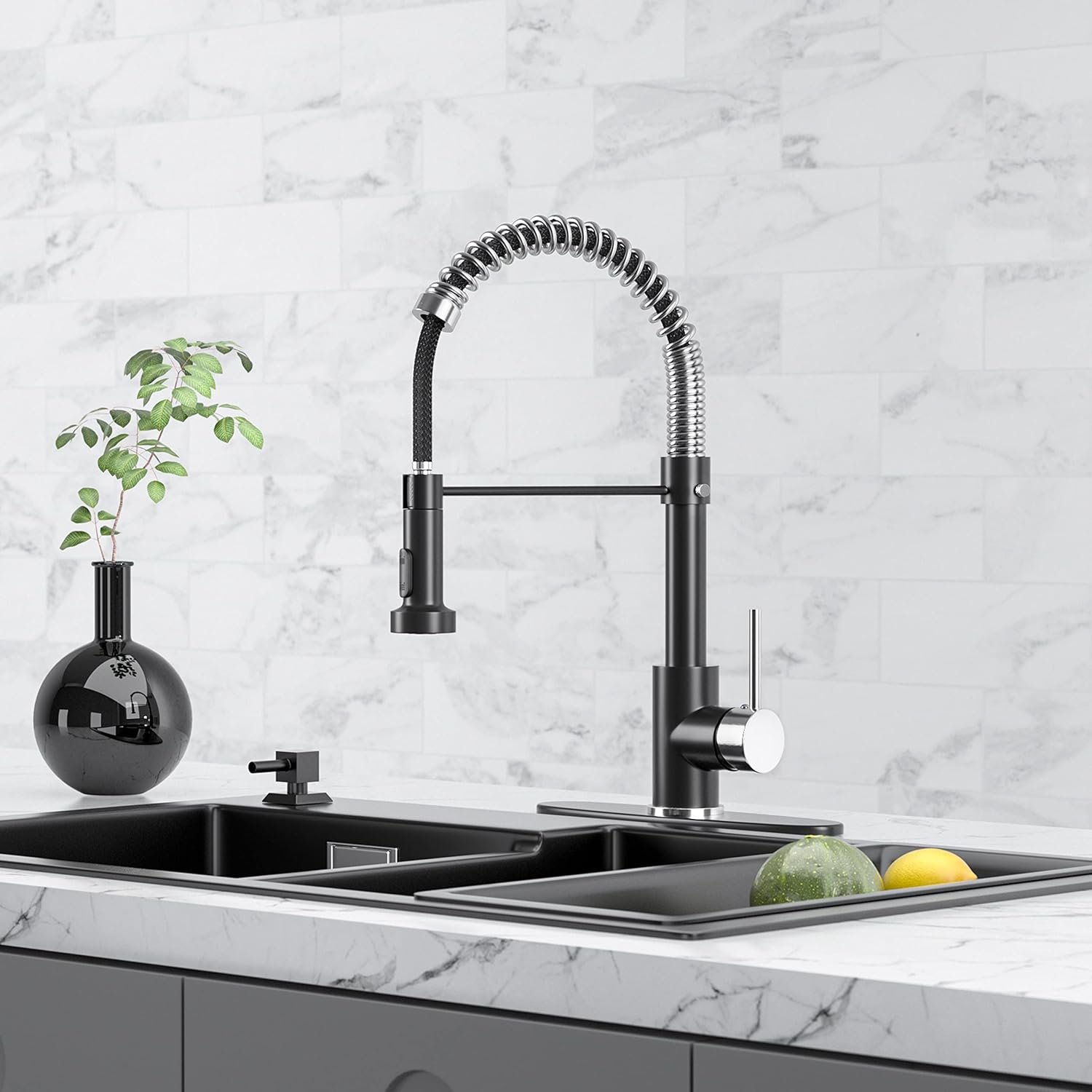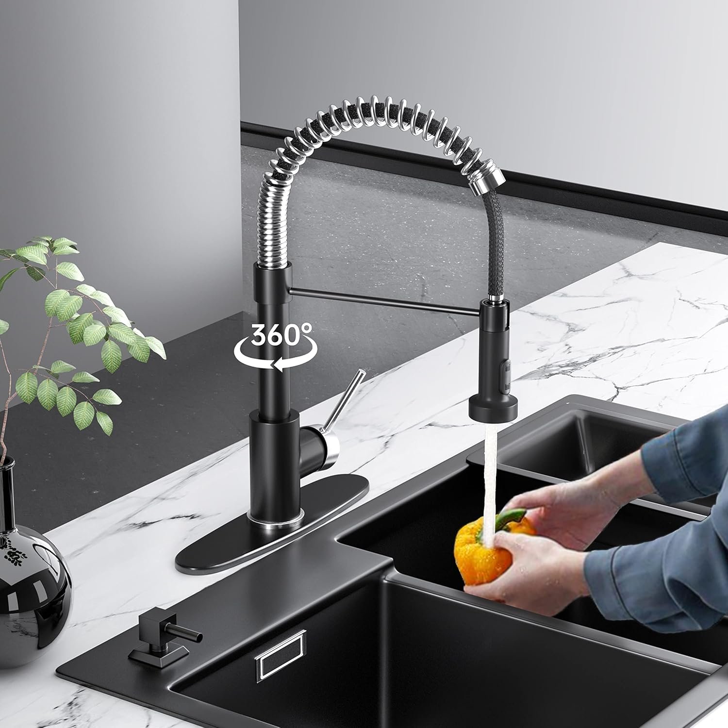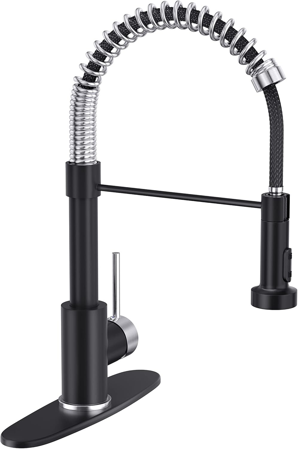 ►[Unique Design]: Single-handle spring sink kitchen faucet. Dual-function nozzles, sprayers can be switched at will. 304 stainless steel spring is not only fashionable, but also corrosion-resistant and easy to clean.