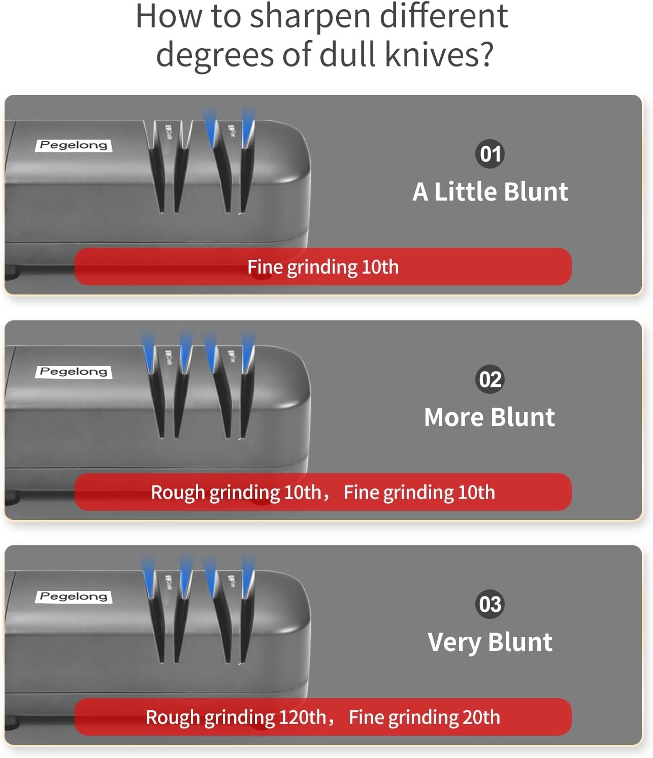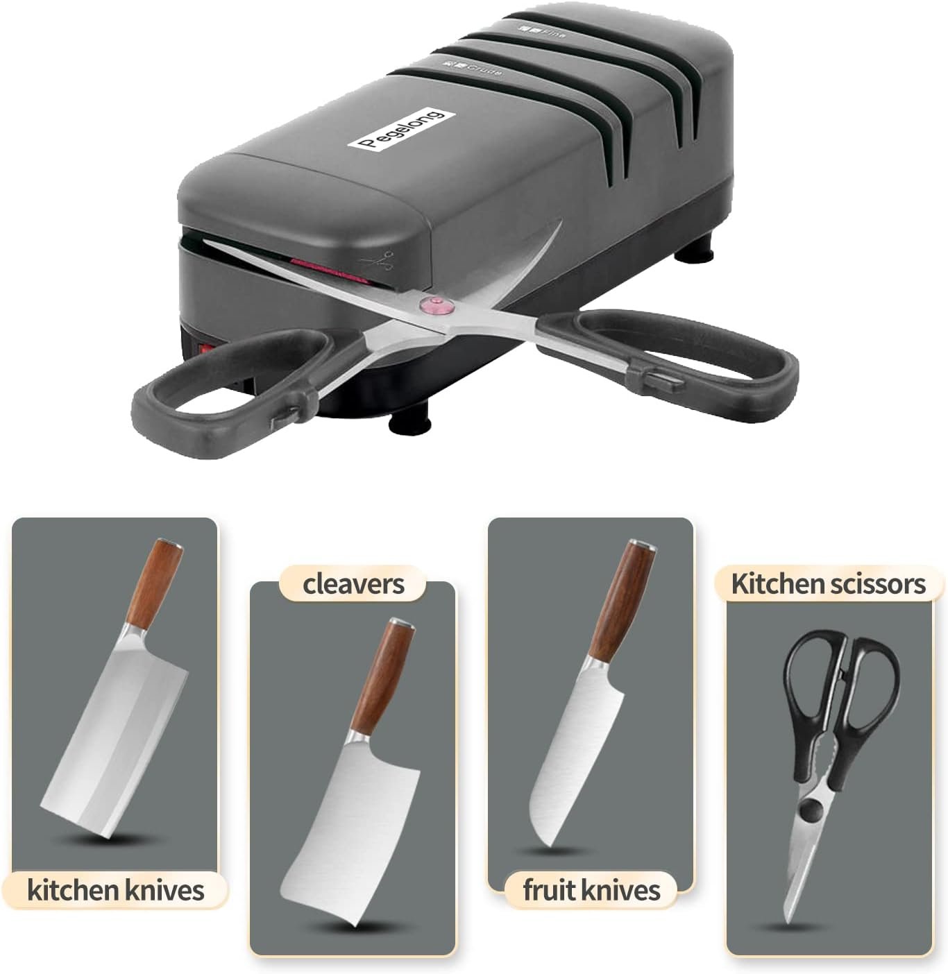 Knife Sharpener for Home:Pegelong electric knives are professionally designed for family kitchens. They are only suitable for stainless steel knives, not for other ceramic knives.