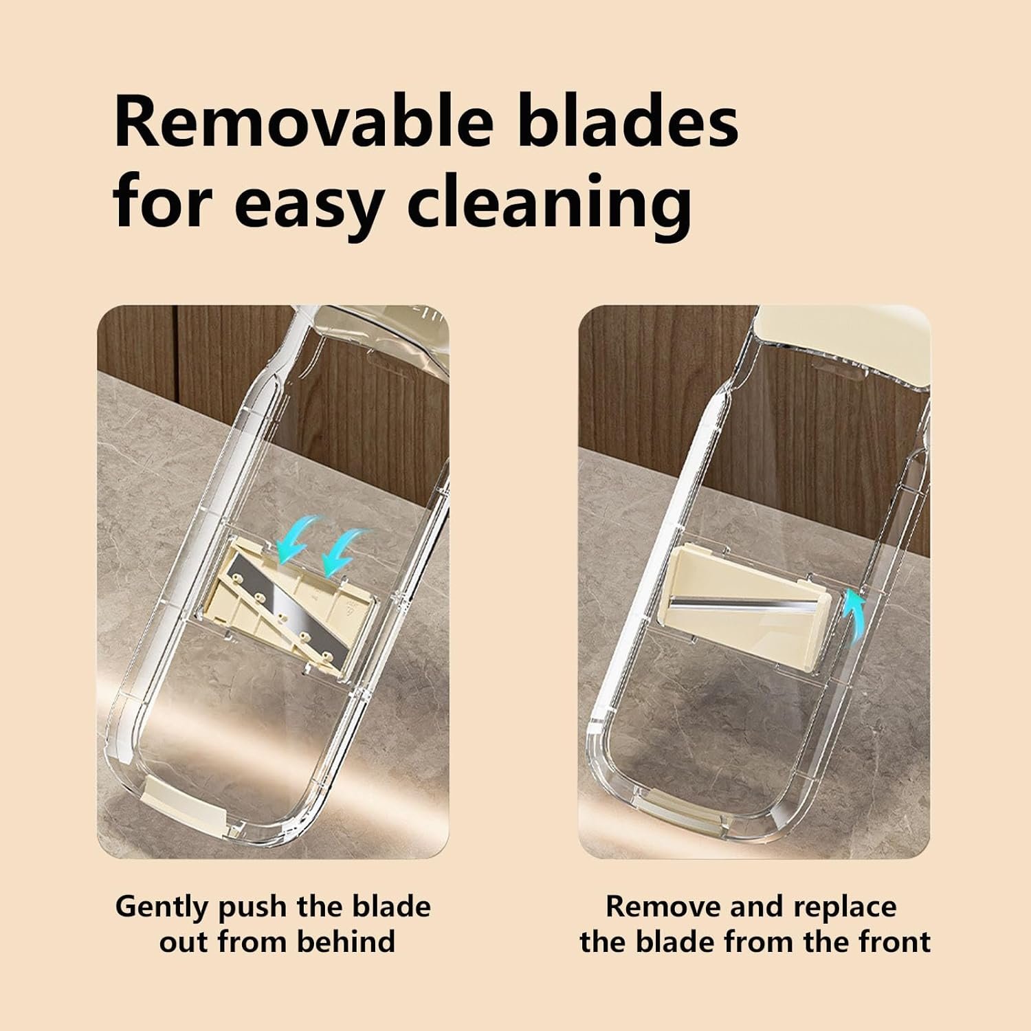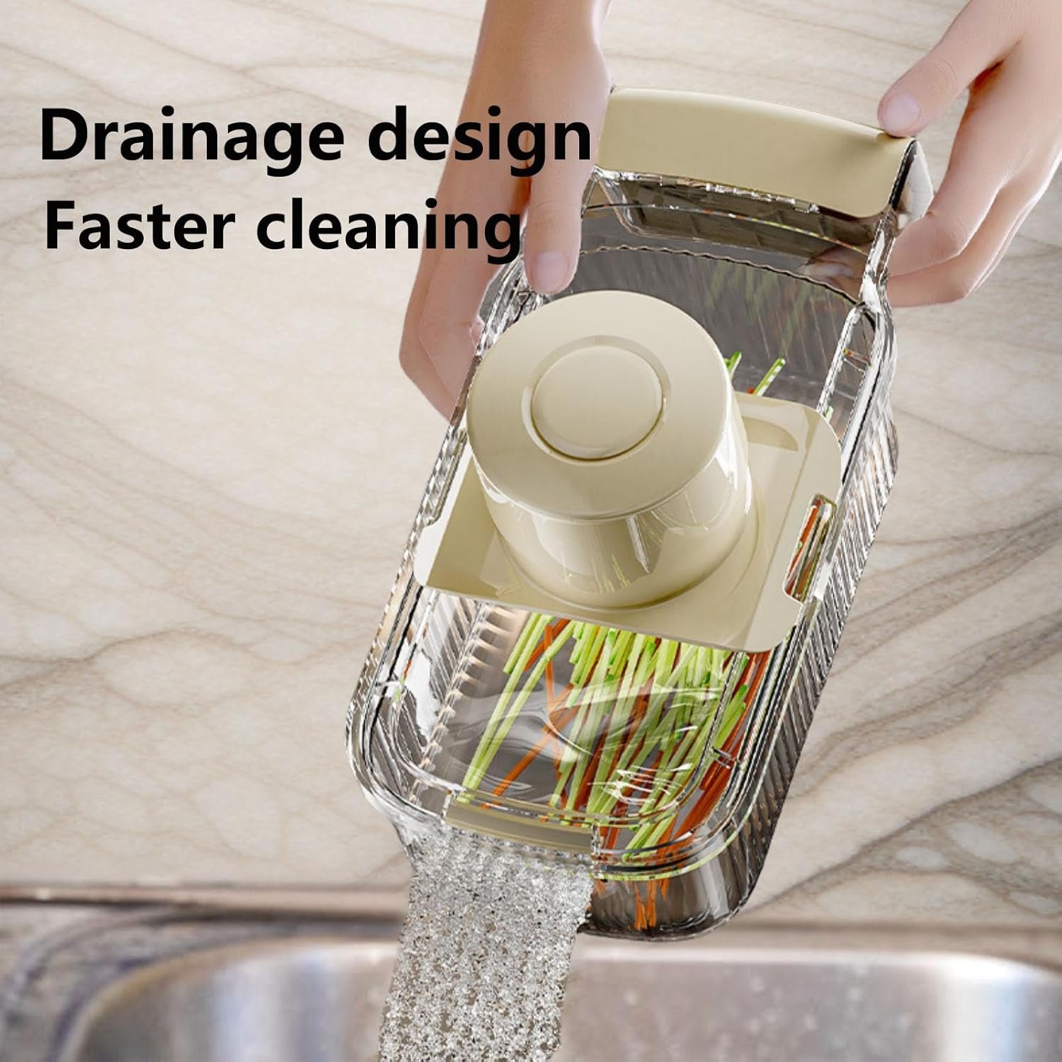 【Easy to Clean】After easily removing the storage box, rinse the blade and storage box directly with running water and then dry naturally, which improves the cleaning efficiency and keeps your vegetable slicer in the best condition every time;