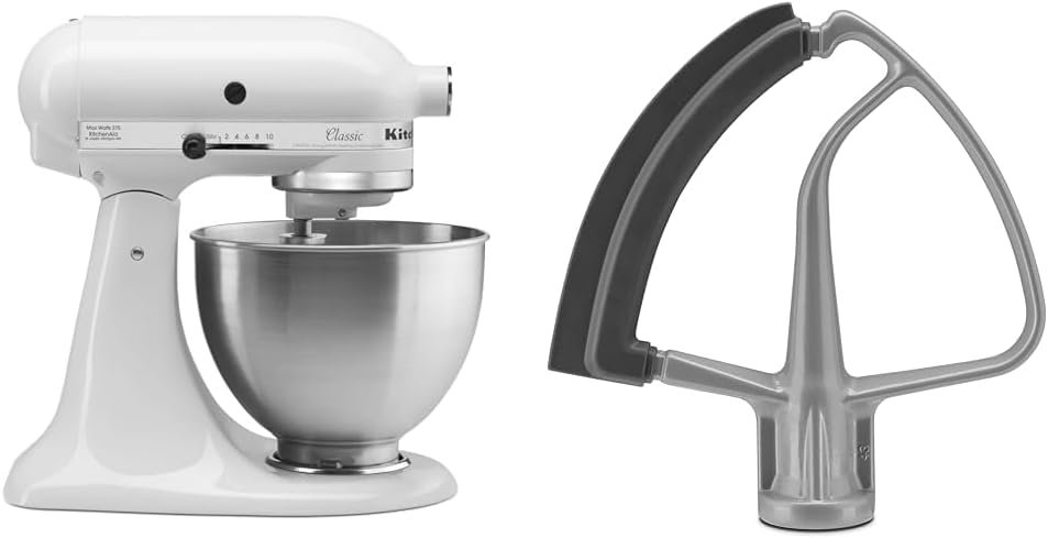 Reduce mixing time and the need to scrape ingredients down the side of the bowl when you are mixing with this KitchenAid® Flex Edge beater in subtle silver, which features a flexible edge that thoroughly scrapes ingredients into the bowl. Fits KitchenAid® Tilt-Head Stand Mixer models K45SS, KSM75, KSM95, KSM150PS, KSM152PS and KSM155GB.
