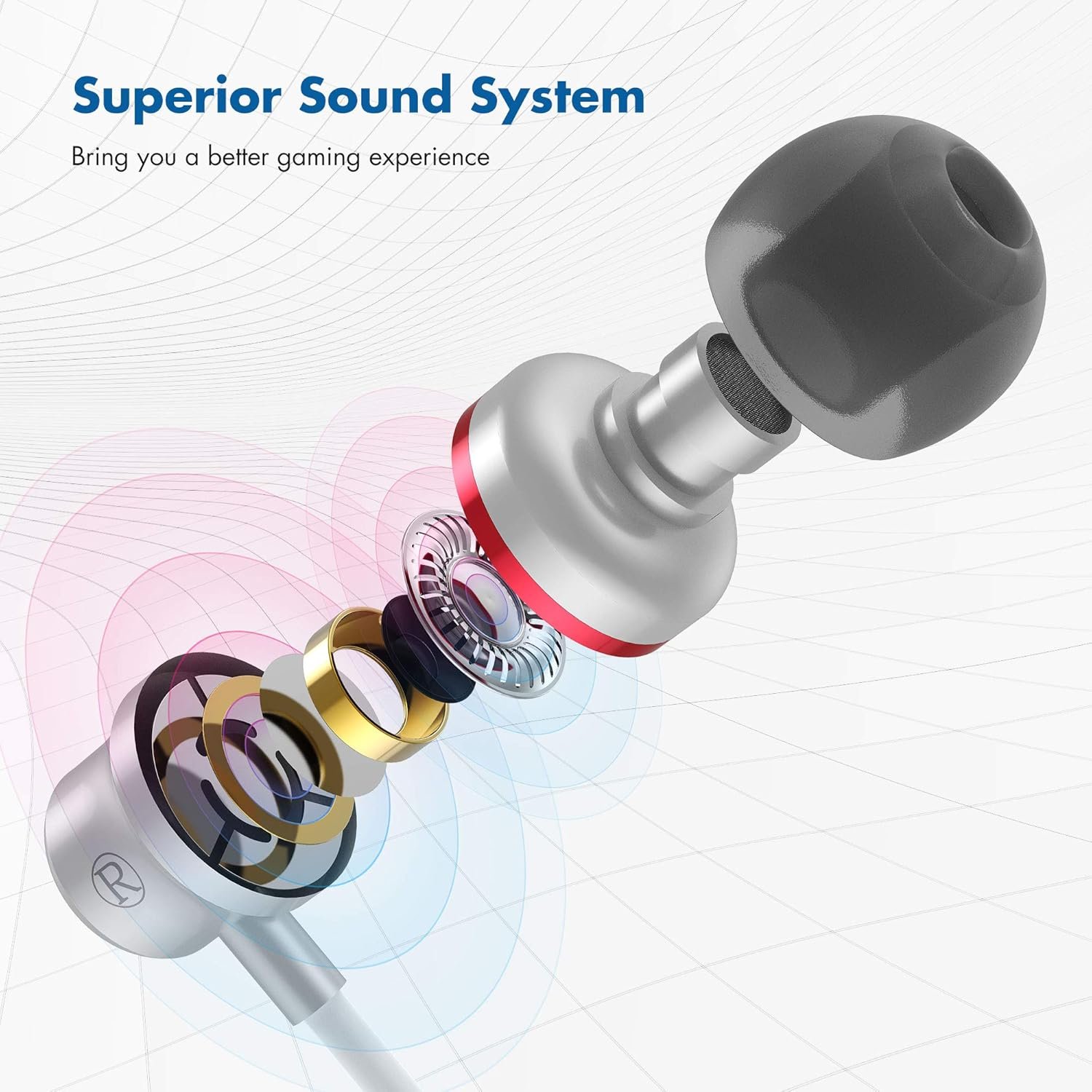 Humanized Design: Marked with “L” and “R” and separated with blue and red colors. Each earbud features high-quality 10mm neodymium-magnet drivers delivering impressive audio with clear highs, crunchy mid-tones, and powerful bass to ensure your fully immersive gameplay.