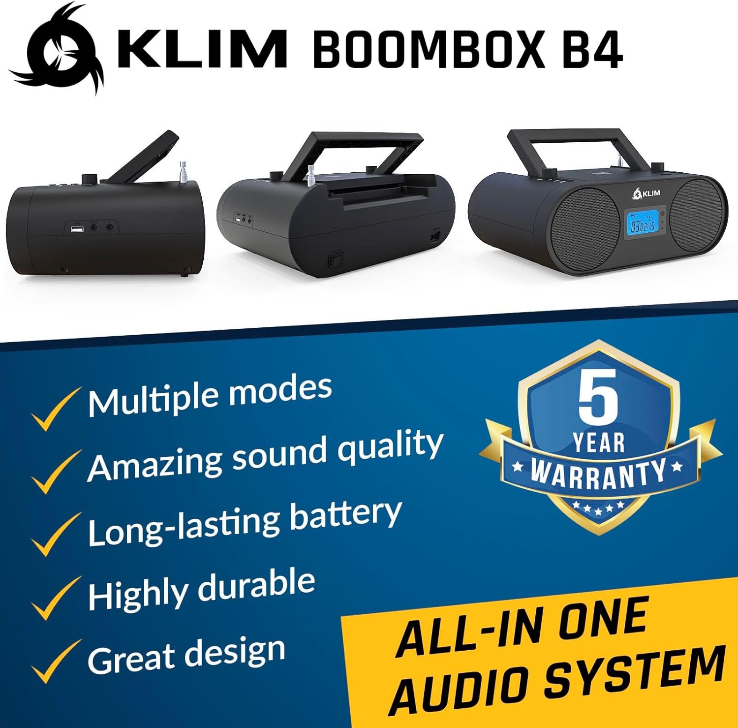 ✅ DON’T STOP THE MUSIC + AM/FM RADIO. With the KLIM Boombox B4 V3 Portable CD player with speakers, we’ve made sure to select the best components to give you an awesome experience. Enjoy your collection of CD thanks to its built-in CD player or listen to your favorite radio stations. By simply pressing a button it will automatically scan and save up to 20 stations for quick access, make it super convenient!