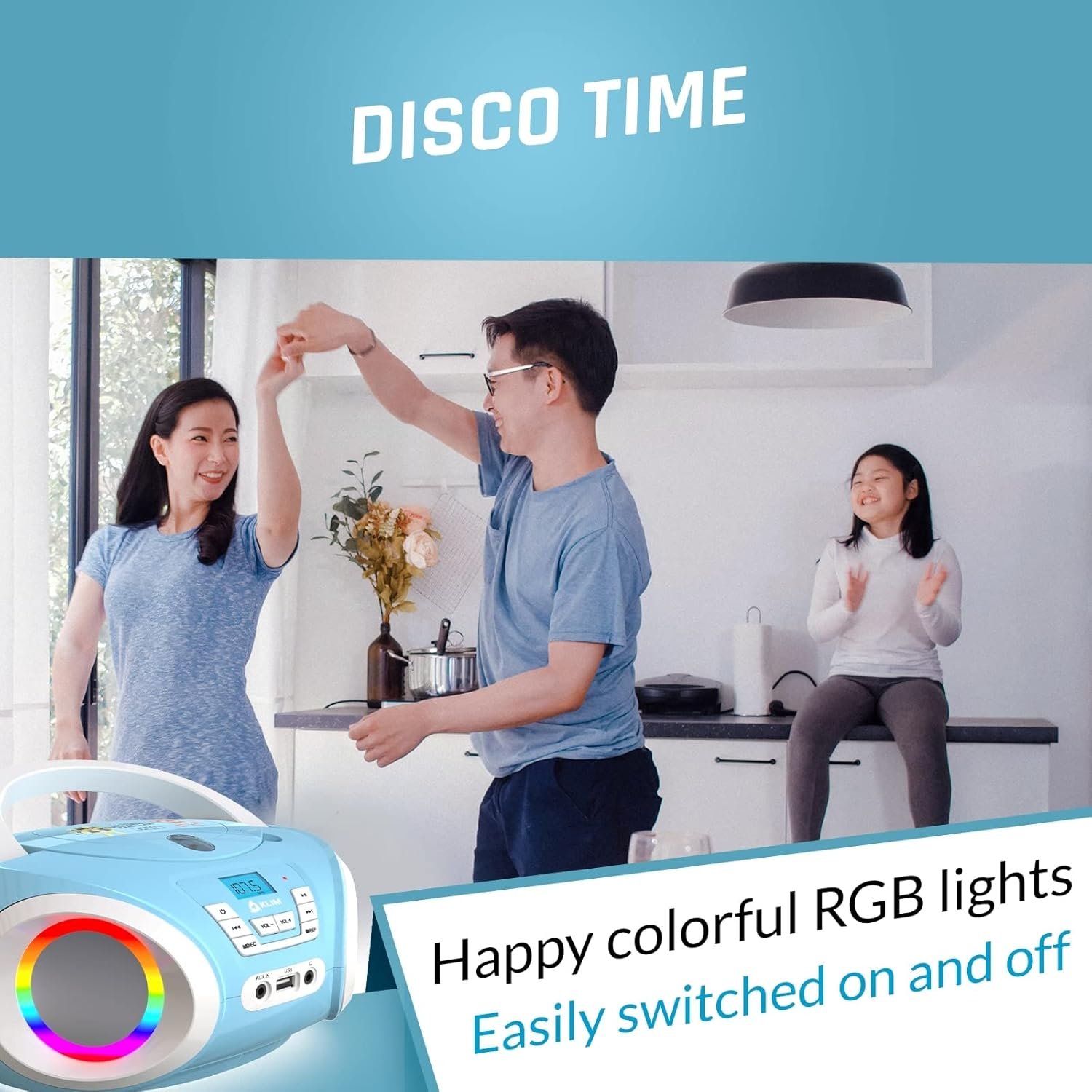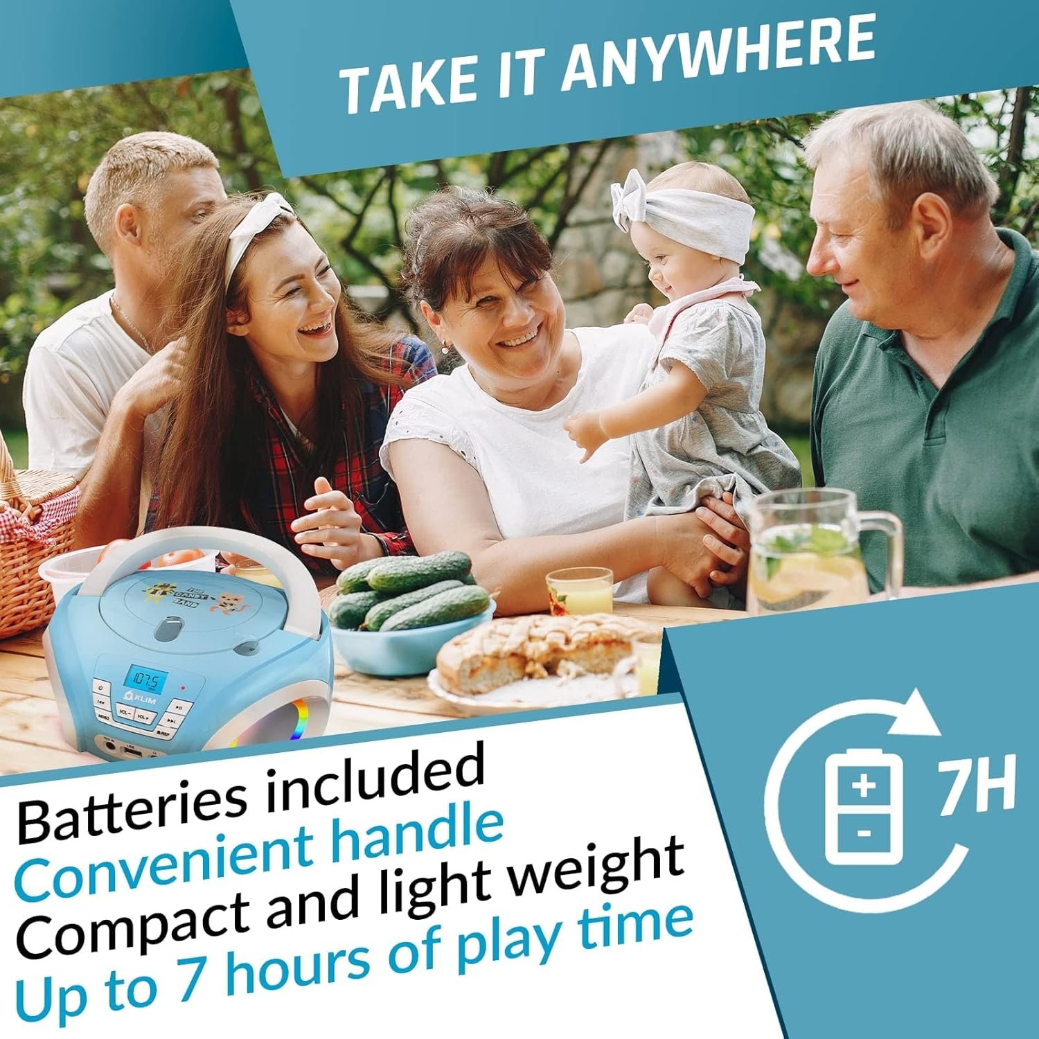 KLIM Candy Kids Boombox CD Player for Kids New 2023 + FM Radio + Batteries Included + Cute Blue Radio cd Player with Speakers for Kids and Toddlers (Renewed)