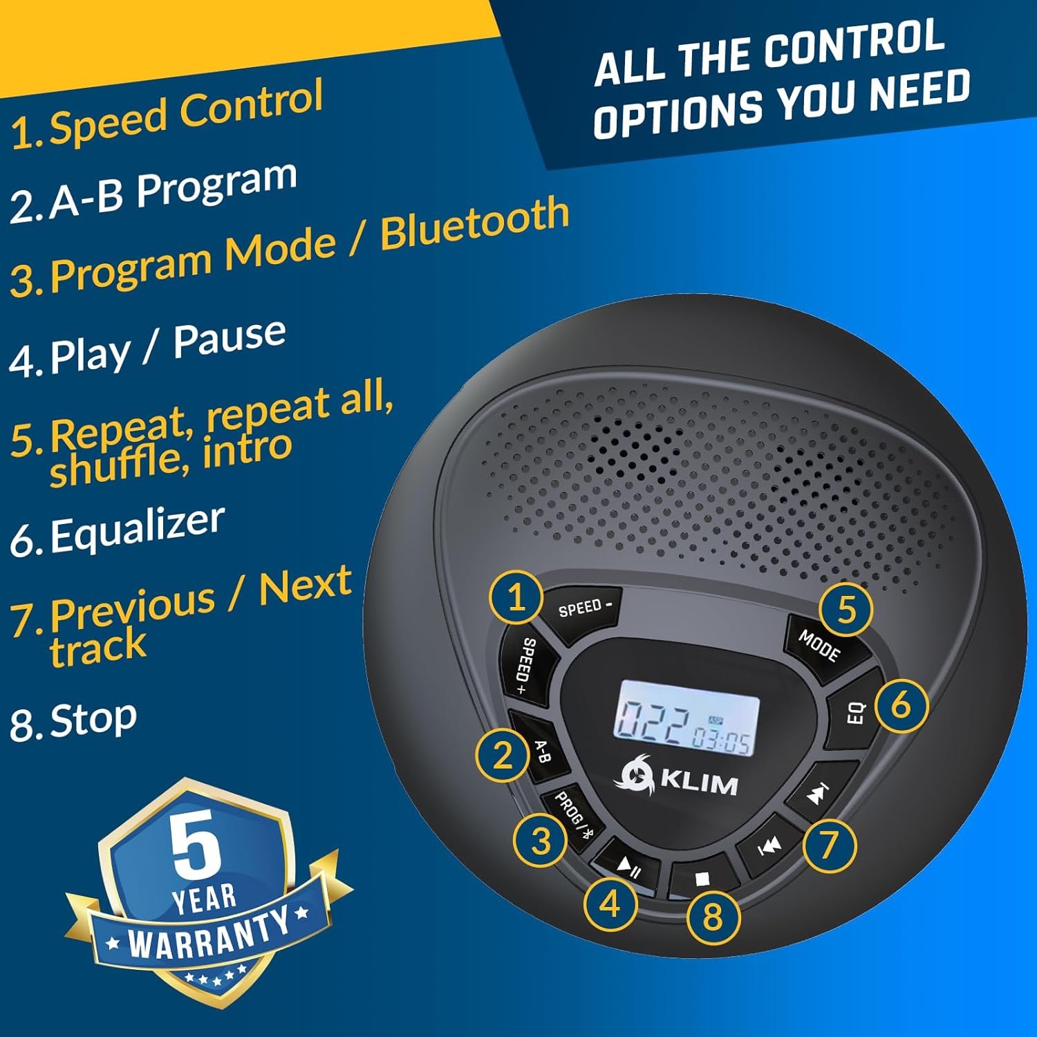 FOR AUDIO FANS, KIDS, ELDERLY, MUSICIANS, STUDENTS, CARS & AUDIOBOOKS: Whether you’re looking for an audiobook player, cd player portable with auto resume and speakers for your audio books, speed control for your music practice, AUX for car connections: the KLIM Speaker is a compact cd player packed with functionality and also easy to use for elderly and kids.