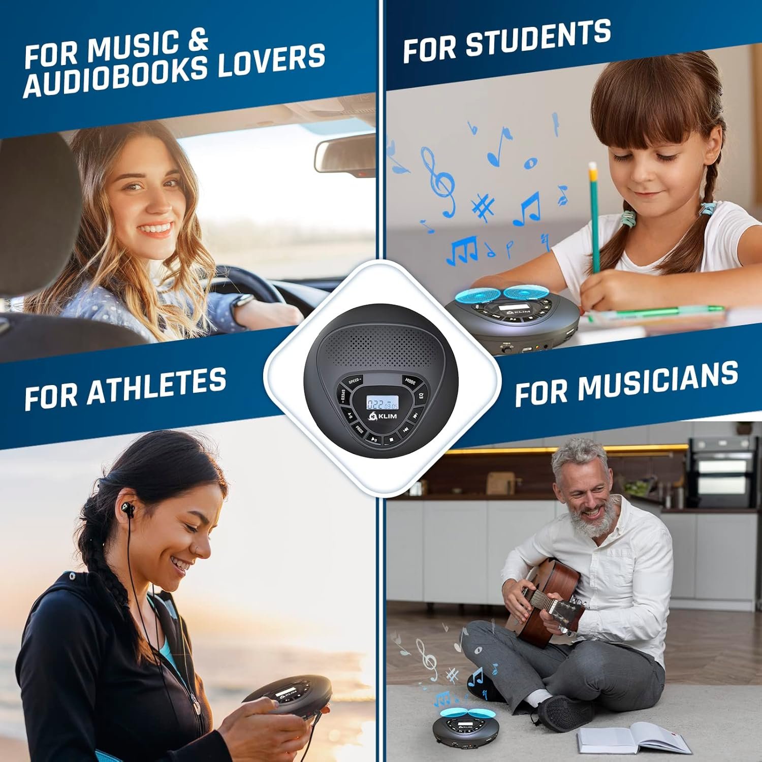 FOR AUDIO FANS, KIDS, ELDERLY, MUSICIANS, STUDENTS, CARS & AUDIOBOOKS: Whether you’re looking for an audiobook player, cd player portable with auto resume and speakers for your audio books, speed control for your music practice, AUX for car connections: the KLIM Speaker is a compact cd player packed with functionality and also easy to use for elderly and kids.