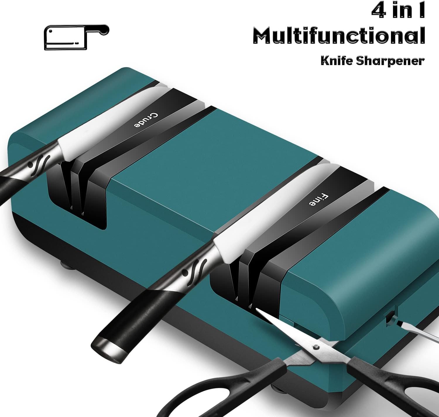 【4 in 1 Knife and Scissor Sharpener】The kitchen knife sharpener suitable for chef knife, slicing knife, fruit knife, santoku knife etc. Besides knife sharpening, the scissor sharpener and slotted screwdriver slot on the side face can provide you with more functions