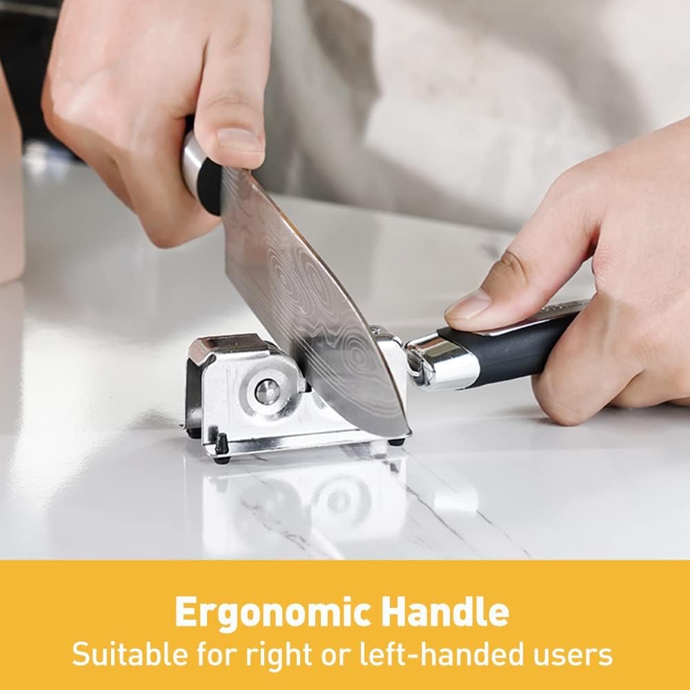 EASY to USE:Whether you are right or left-handed,allows you to restore your cooking knives in a matter of seconds! Simply place the blade in the slots and gently pull the knife through a few times for fast, effective sharpening.