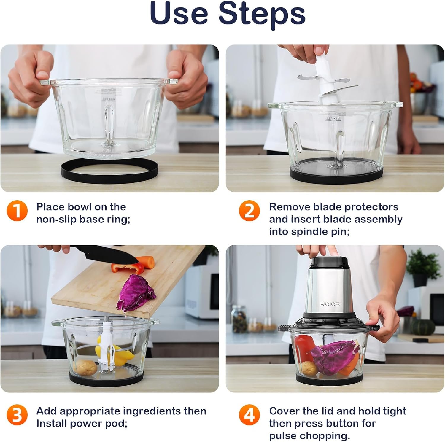 Package Included : This product comes with 500W powerful motor, 16 Cup Bowls(8 cup glass bowl, 8 cup stainless steel bowl), 1 blade set, 1*transparent lid, 2*anti-slip ring, ETL approval, and LAB certification. It also includes a 12-month quality warranty and lifetime customer service. Please contact us if you met any questions.