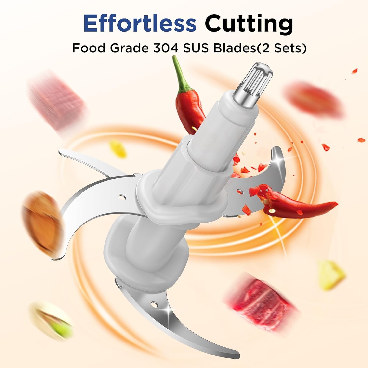 Universal–Built with a 500W powerful pure copper motor and S shaped Bi-level blades, this electric food chopper is able to chop, blend, puree, mix and mince throughly and evenly in no time, with each task taking approximately 10 seconds to done.