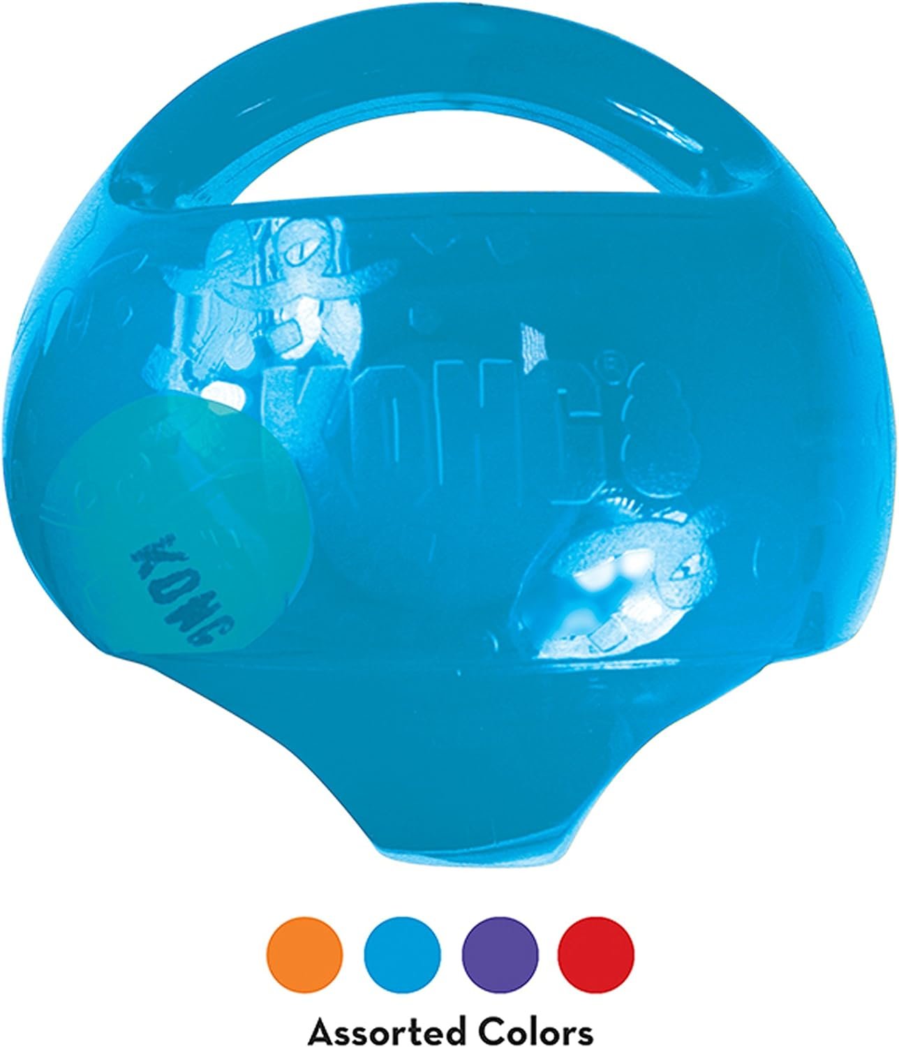 The KONG Jumbler is a two-in-one ball toy for twice the interactive fun. The interior tennis ball and loud squeak entice play, while the handles make pickup and shaking easy. The Jumbler stands up to tough play, making it ideal for games of fetch. Available in two shapes and sizes, the KONG Jumbler will ensure an exciting, active play session for you and your dog. Covered by KONG Satisfaction Guarantee. See KONG Satisfaction Guarantee document below for full details.