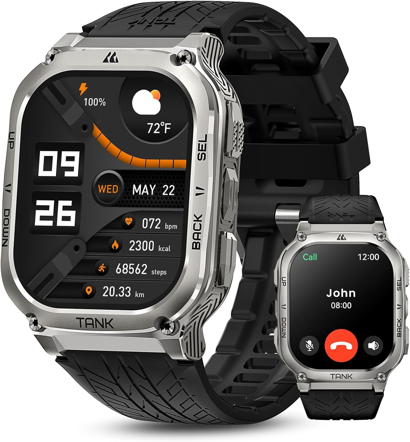 Extremely Resistant Body: This rugged smart watch is equipped with a fully enclosed metal body, which can be easily immersed in 50m (IP69K waterproof), whether swimming or surfing. It can provide professional data and is the best partner for sports lovers.