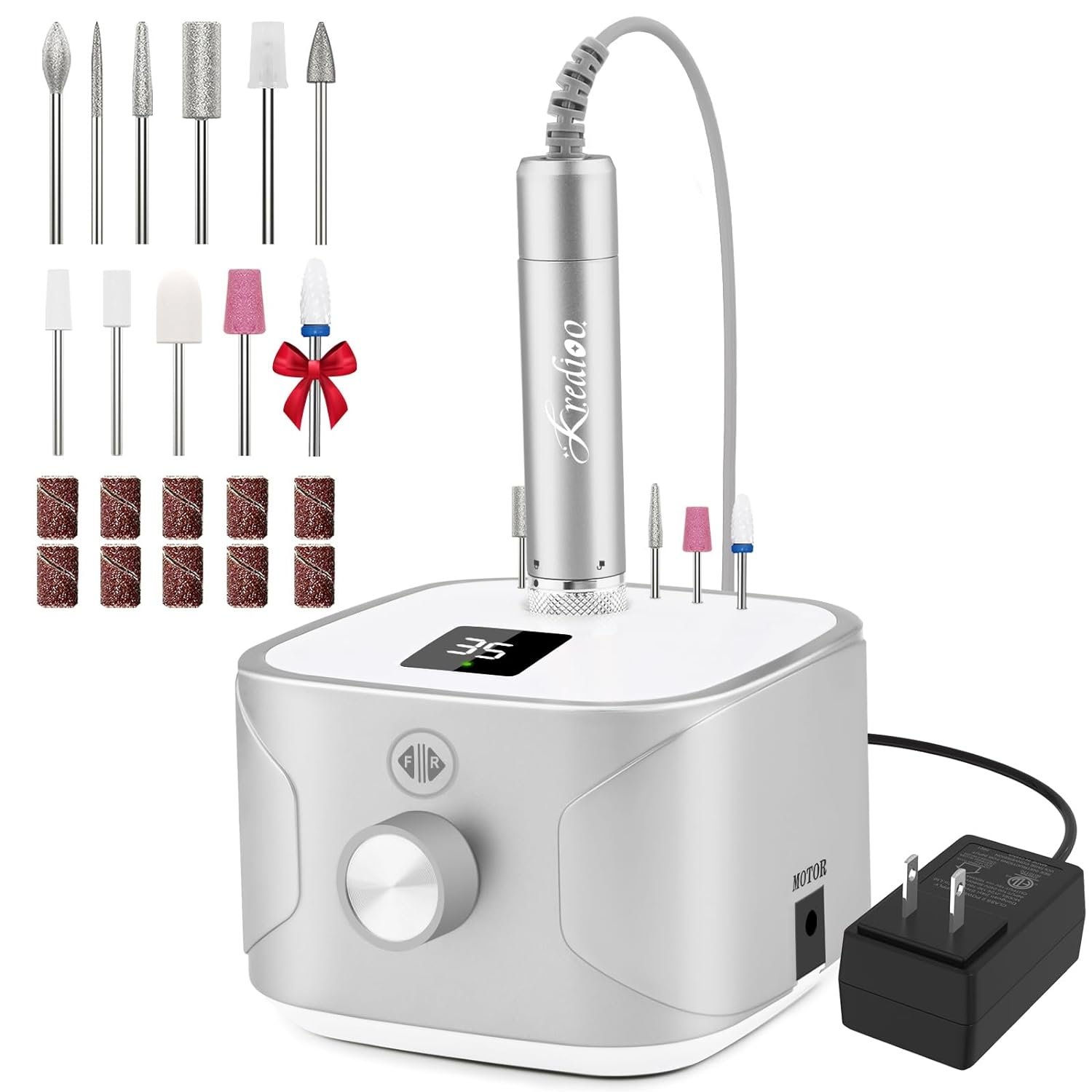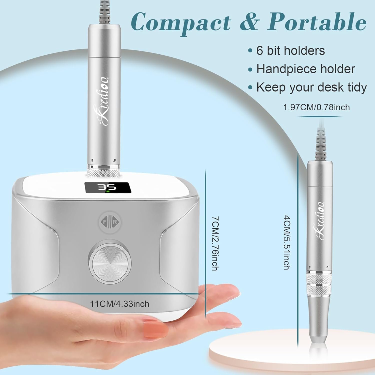 Efficient and Time-Saving Nail Drill: Kredioo electric nail drill is designed to provide efficient and time-saving manicure and pedicure services. Upgraded to 35000RPM with its powerful motor and adjustable speed settings, it can quickly and easily remove old polish, shape nails, and smooth rough edges.