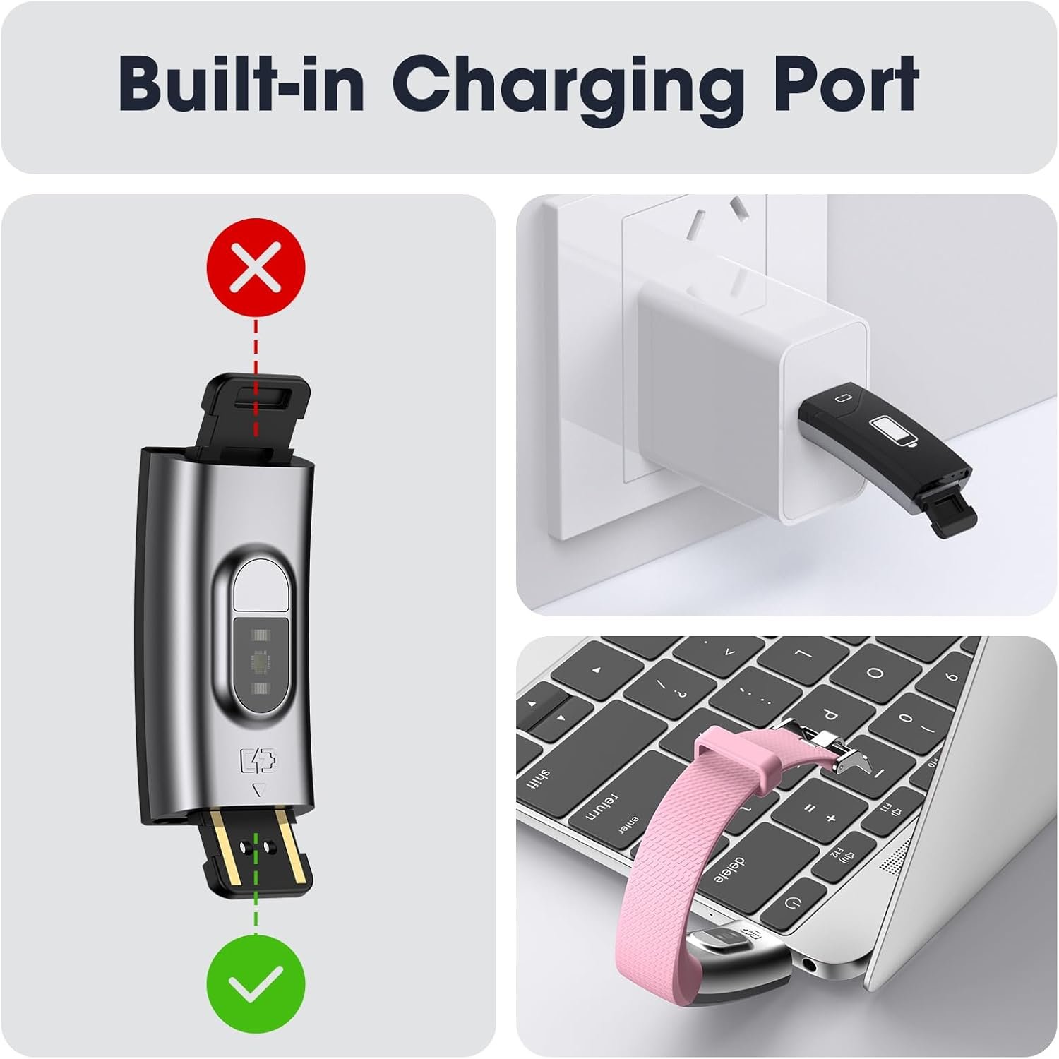 【USB Charging】: Remove the wristband, connect the charging pins to a USB port, and recharge your fitness tracker. With a full charge, enjoy up to 7 days of use without needing to recharge frequently. 【Facing charging difficulties? let us know, and we’ll be happy to help.】