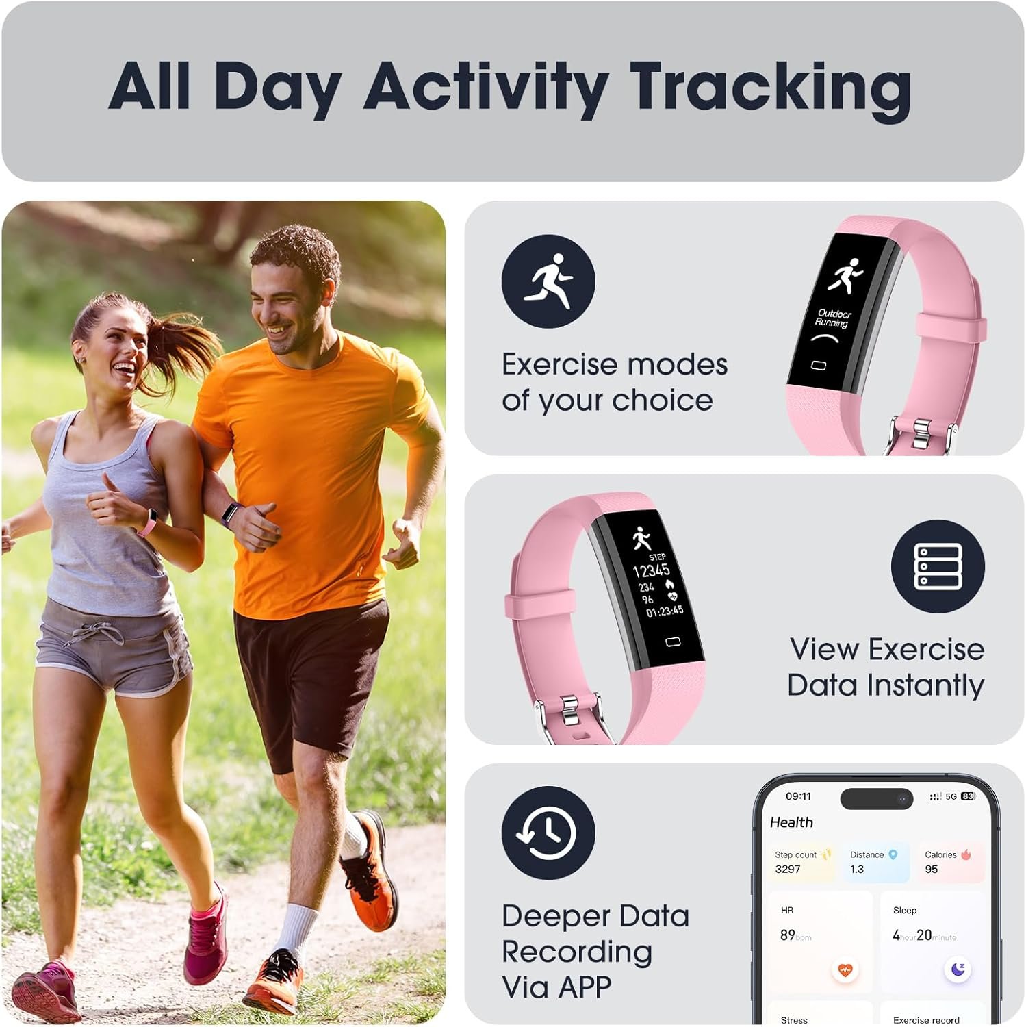 With daily waterproof rating allows the fitness tracker to be used in the shower, rain, and while running. (Tips: Do not touch hot water or wear it while swimming)