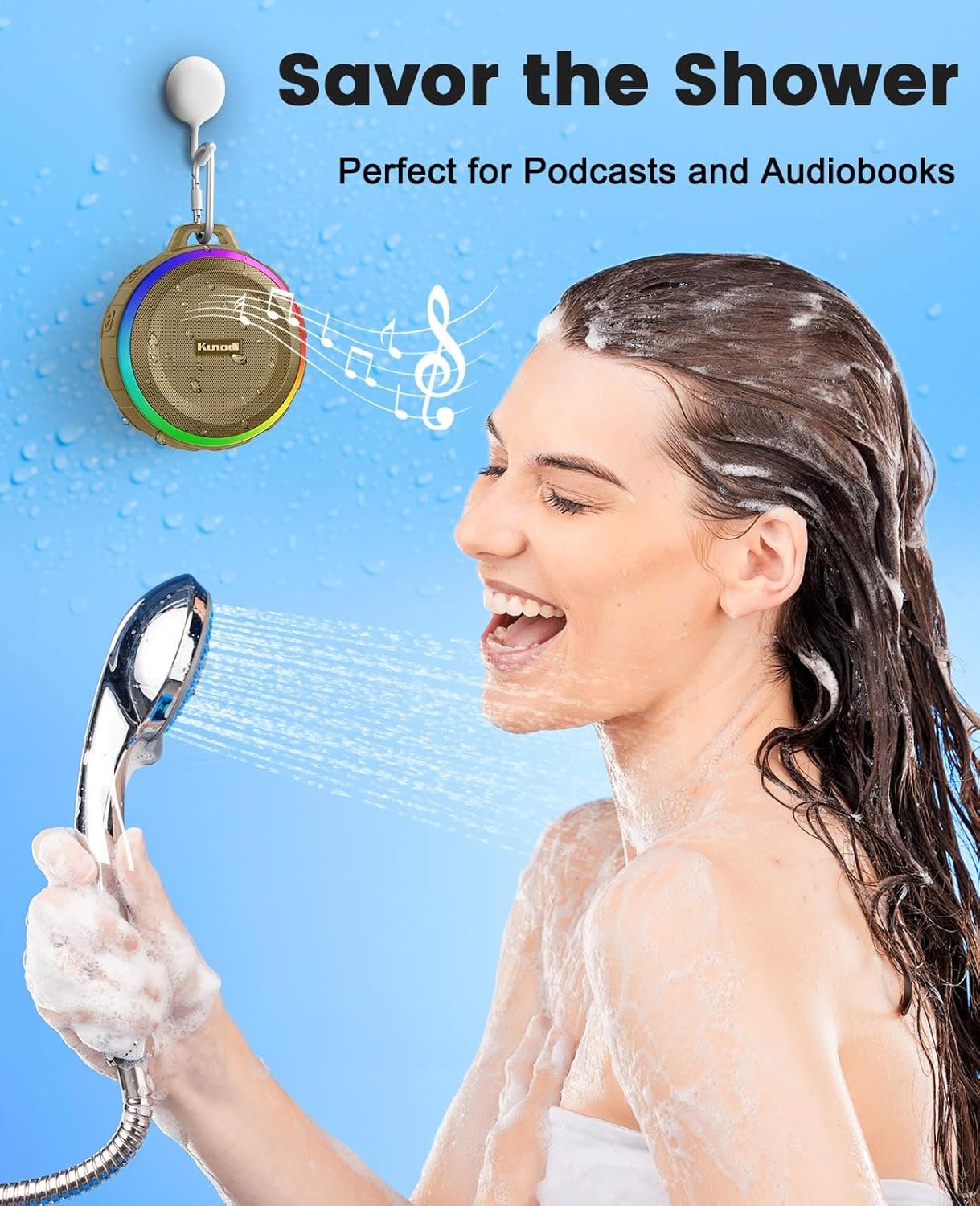 IPX7 Waterproof & Suction Cup: Shower Speaker upgrades IPX7 waterproof and dustproof with a solid suction cup, portable for a shower, swim, float, boat, kayak, pool, beach, gift and a lot.