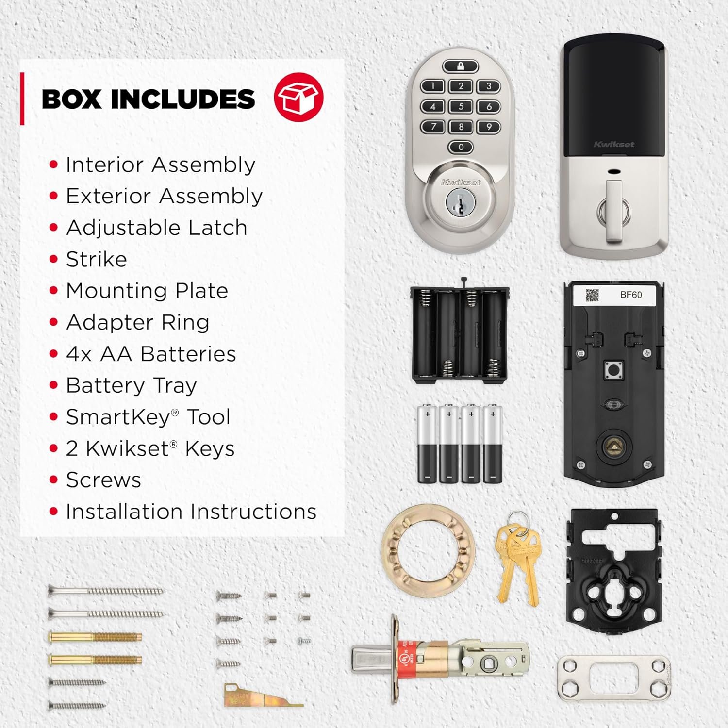 Unlock simplicity, connectivity and smart living with Halo Keypad. With the Kwikset app and Halo Keypad’s built-in Wi-Fi, you can lock or unlock your home from anywhere. Keyless entry means you can ditch your keys, for good — unlock your door with the Kwikset app or enter a code on the backlit keypad. Access codes simplify sharing access with family and trusted guests, and real-time notifications give you peace of mind they’ve locked up after leaving. Experience total control of your front door: Control your lock with your voice, check the event log any time and receive instant notifications for intrusion attempts. It’s easy to get started with Halo Keypad; the guided setup and installation only requires a screwdriver. When it comes to security and access control, you can trust Kwikset’s 75 years of experience to deliver effortless protection and peace of mind.
