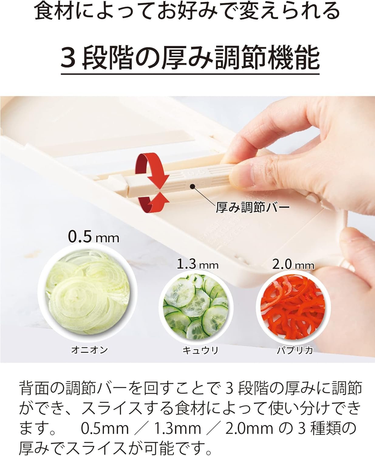Adjustable Thickness: The rubber grip makes it easy to grip. The ceramic blade makes this slicer light, fast and cleanly cut. Adjustable to 3 levels (0.02, 1.3, 2.0 mm) thickness. It can be used according to ingredients such as onions, cucumbers, paprikas, cabbage, etc. Easy to cut cabbage