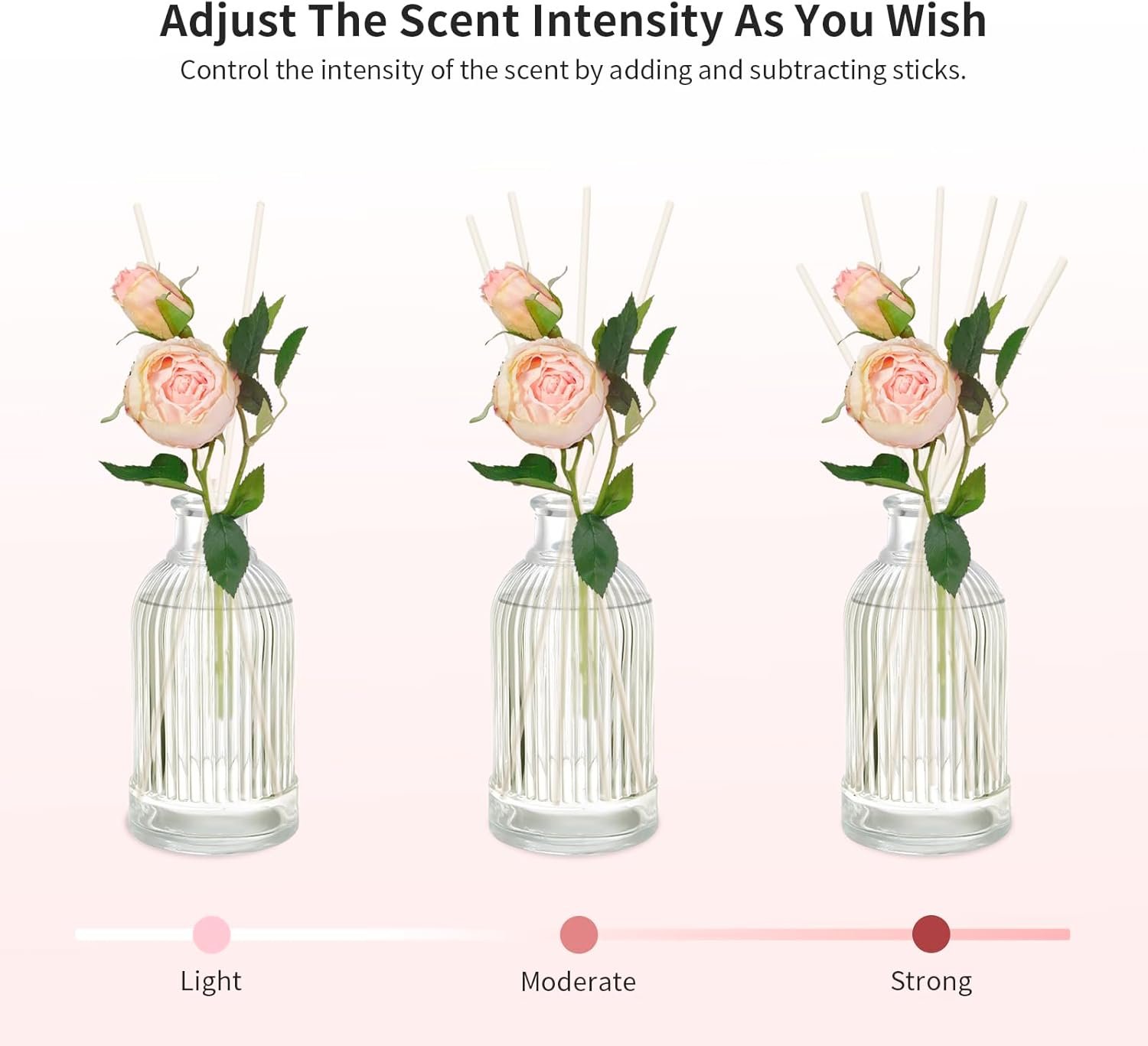 Controllable Smell Intensity: You can control the intensity of the scent by increasing or decreasing the number of reed sticks, so you can adjust the scent according to your preference and the size of your space