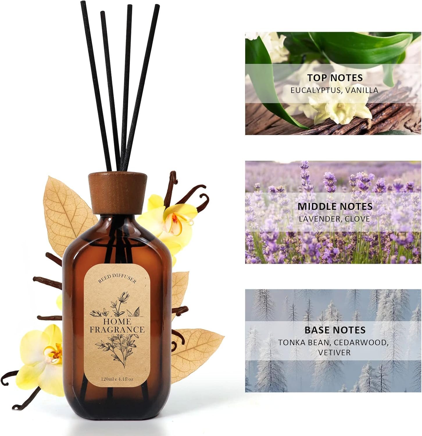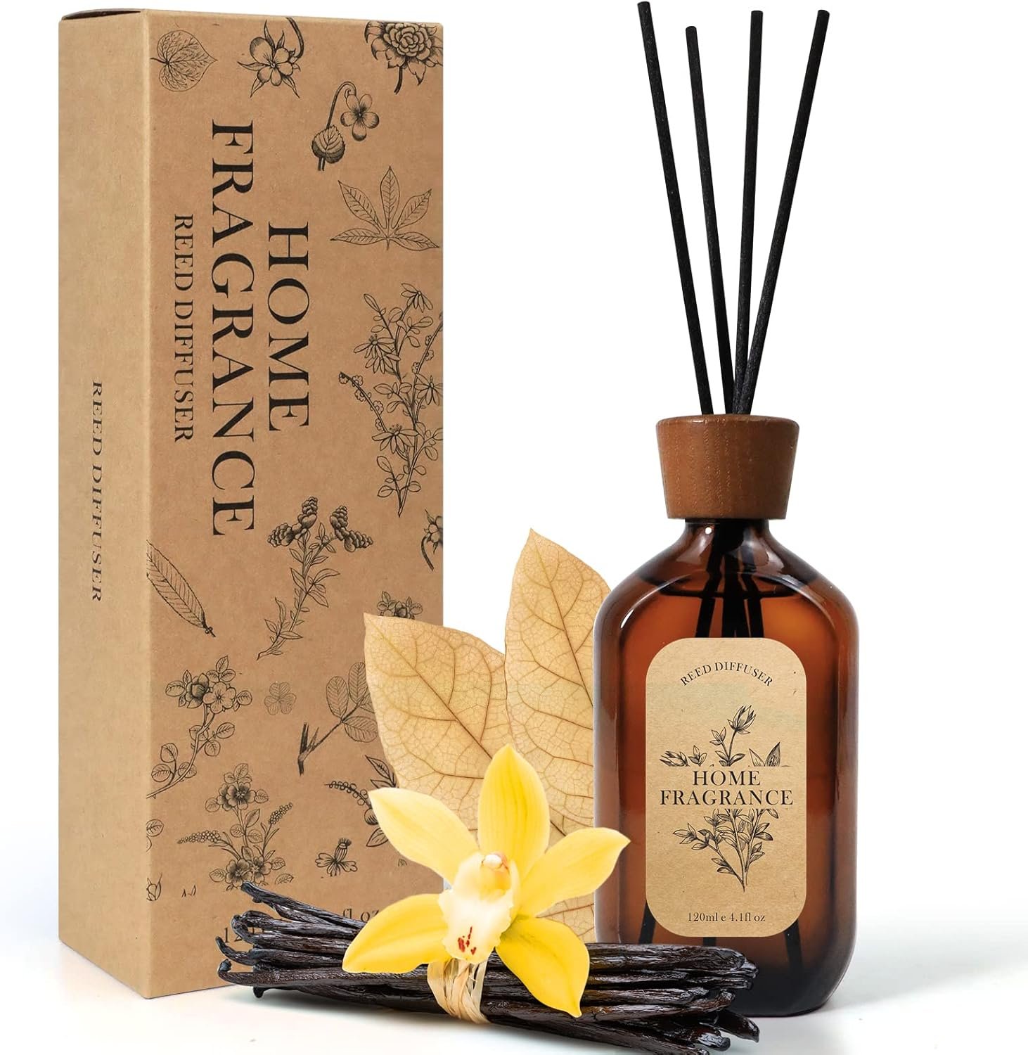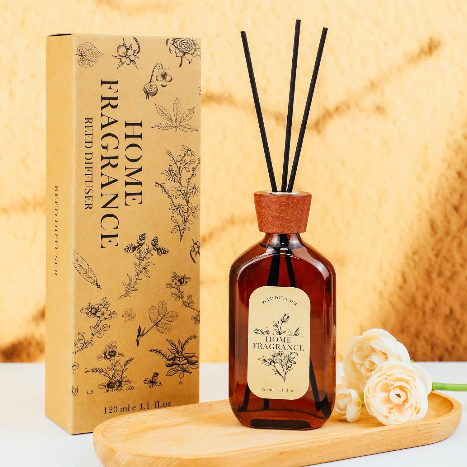 Reed Diffuser Set: You get 6 diffuser sticks, a beautiful brown glass vase, premium tobacco & vanilla essential oils (4.1oz), and when you feel the scent is too light or too strong, you can adjust the intensity of the scent you like by adding or reducing the diffusion sticks in the bottle