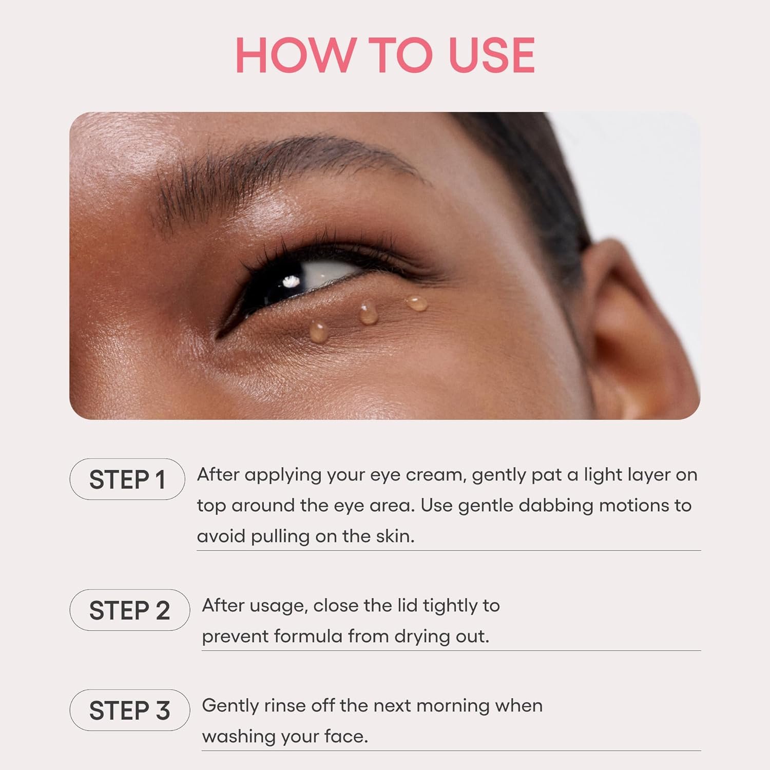 Customers appreciate the eye mask’s hydrating and firming effects. They find it feels nice on their skin, with a texture that feels like soft rubber. Many consider it the best eye mask they have tried. The consistency is excellent, not greasy, and stays put without pilling or traveling into the eyes. Customers also like the cooling effect, ingredient content, and value for money.
