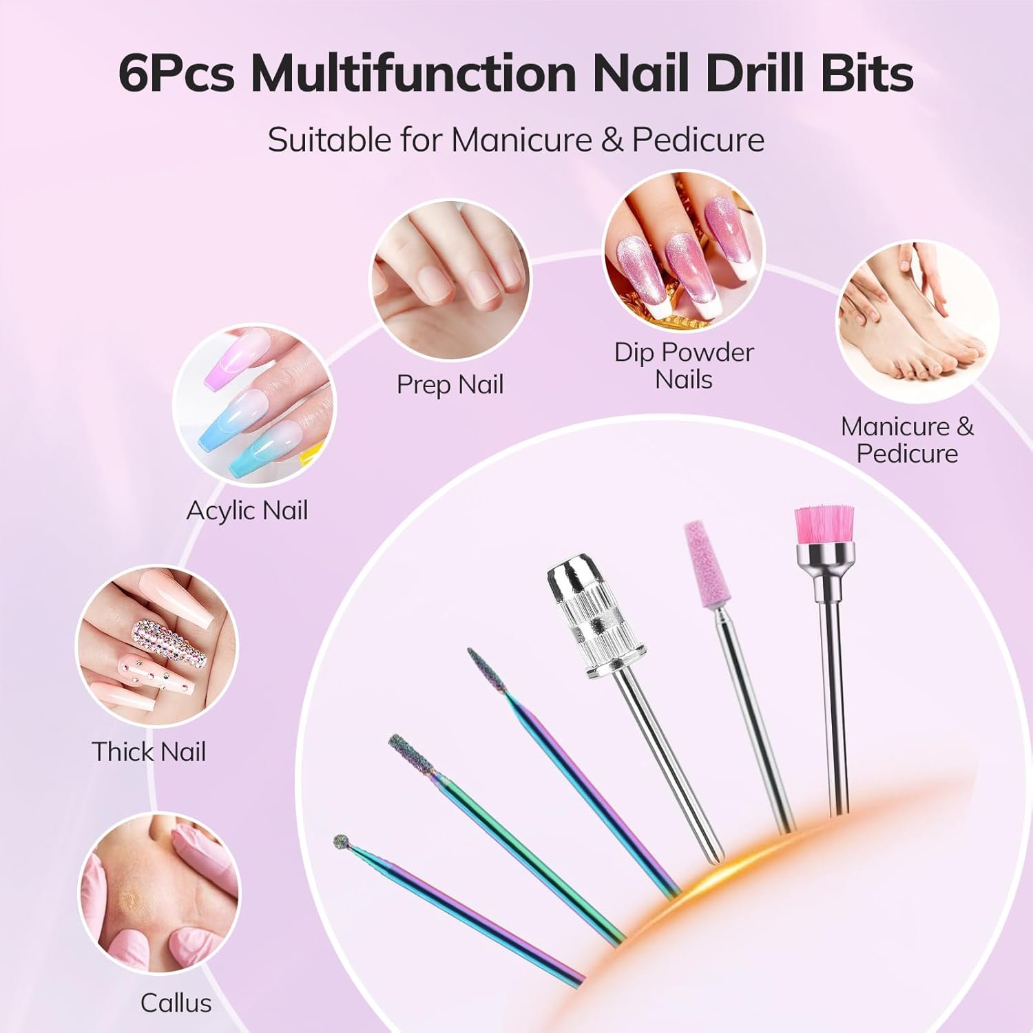 Versatile Kit for Complete Nail Care: Unleash your creativity with our comprehensive kit featuring 6 high-quality 3/32” nail drill bits. From grinding to polishing and shaping, it’s your essential tool for professional-quality hand and foot care treatments.