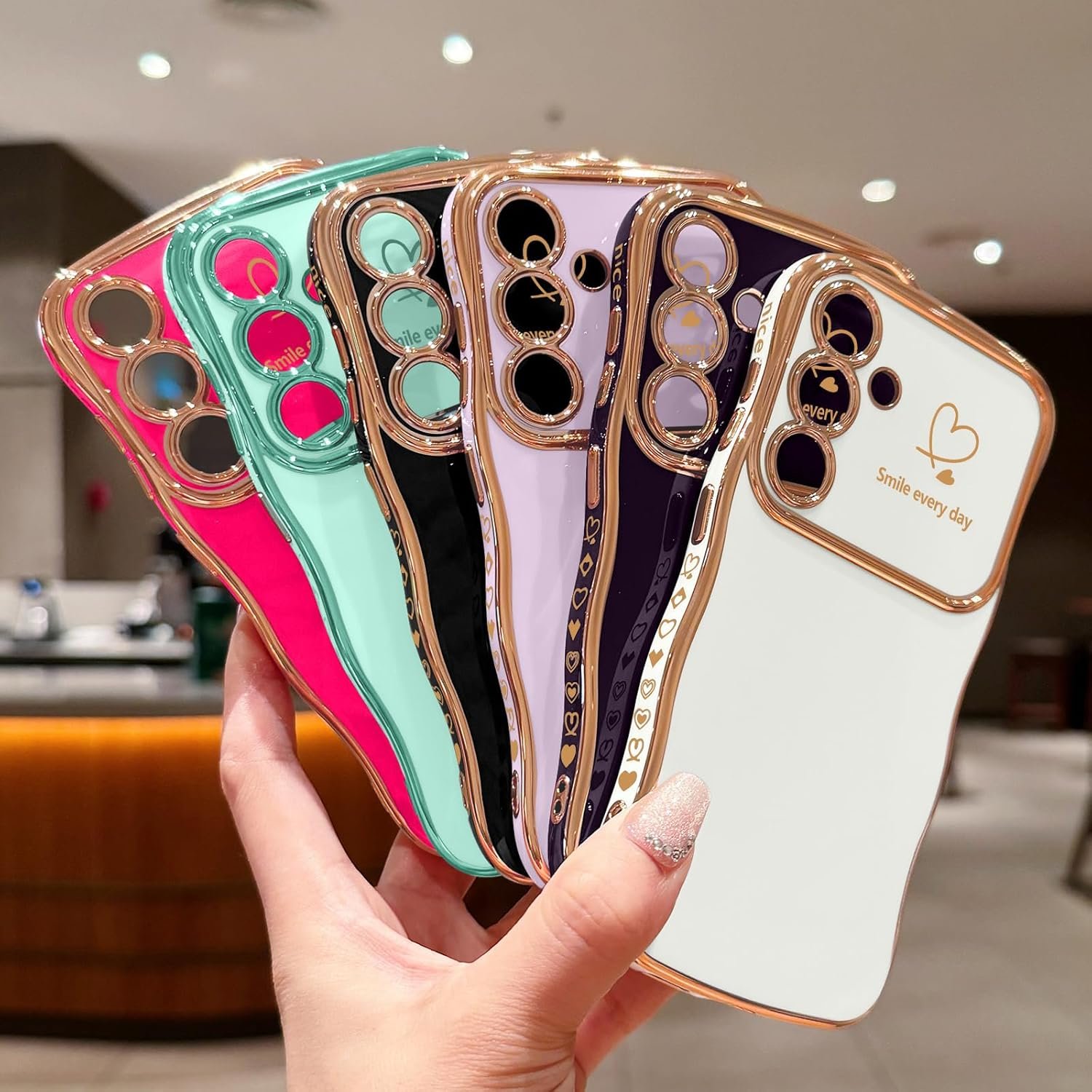 【Compatibility】- Elegant electroplated cute love heart wavy shape case specially designed for Samsung Galaxy A14 4G/5G 6.6 inch. Support wireless charging.