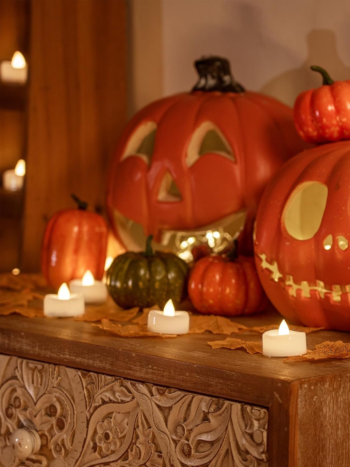 Merrynights Flameless LED Tea Lights for Halloween, Pack of 24