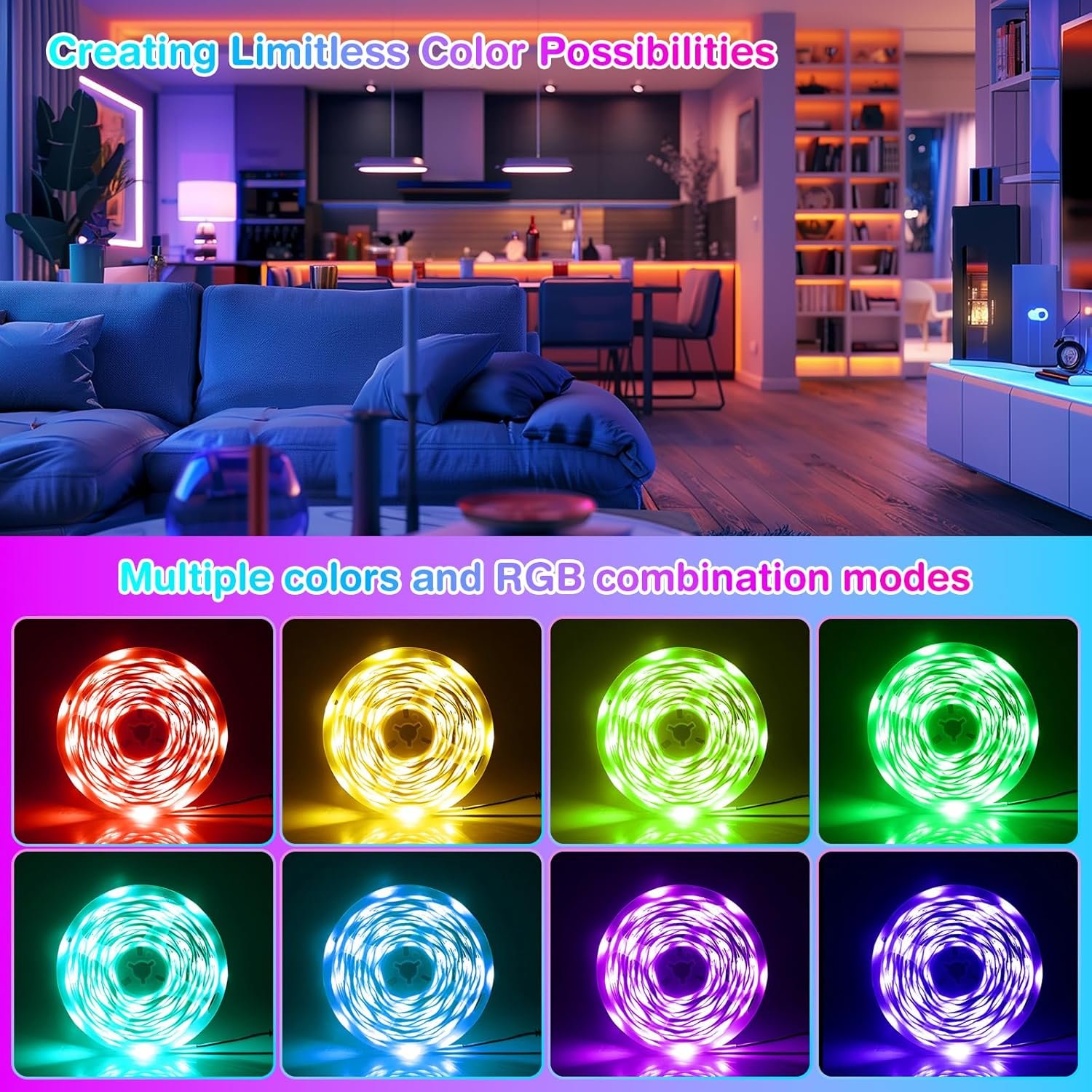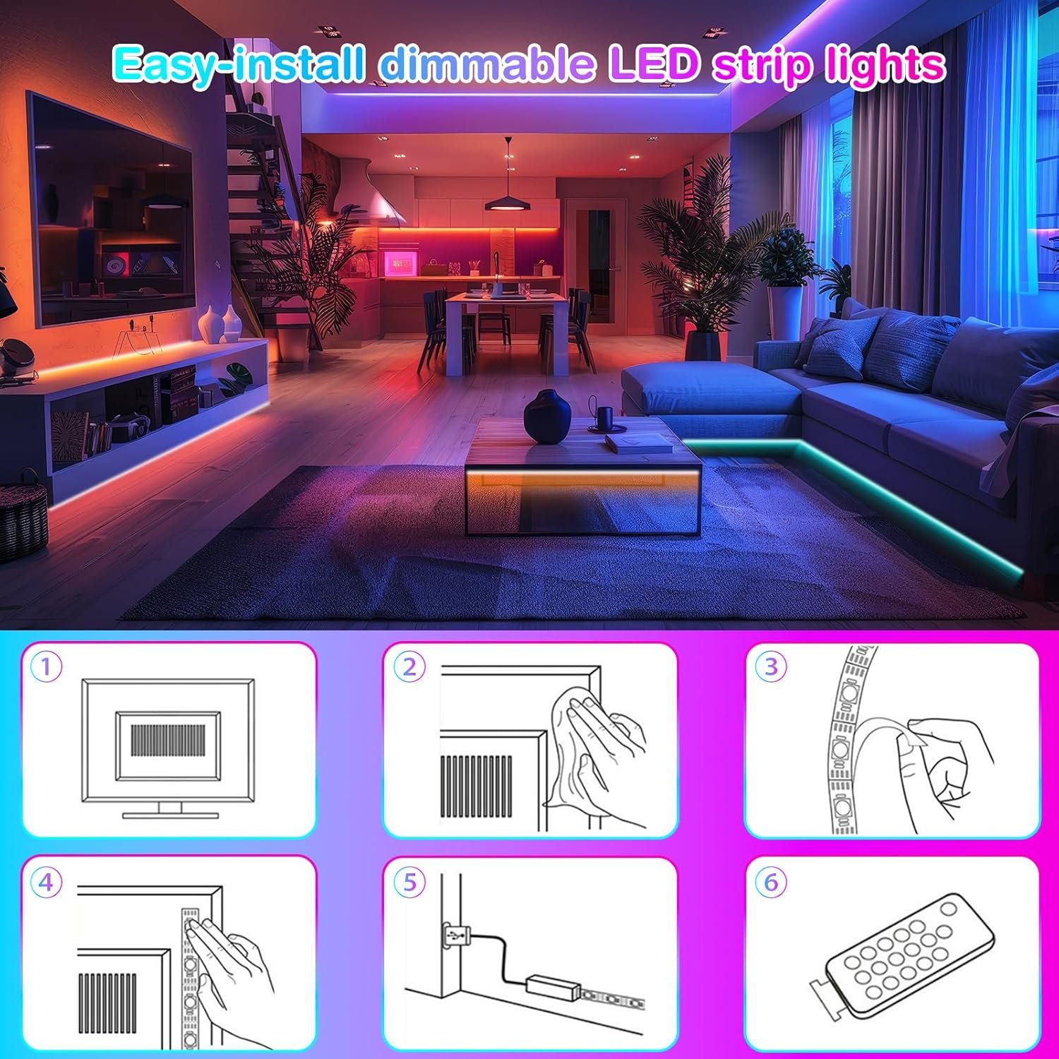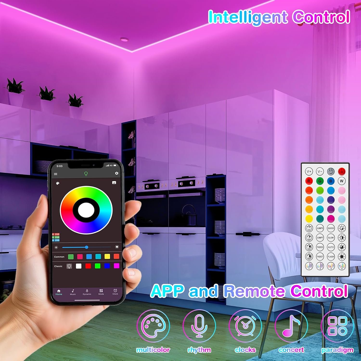 Control your LED strip lights easily with the smart app and 44-key remote. Customize colors, adjust brightness, and set modes for lighting in any room, party, or event.