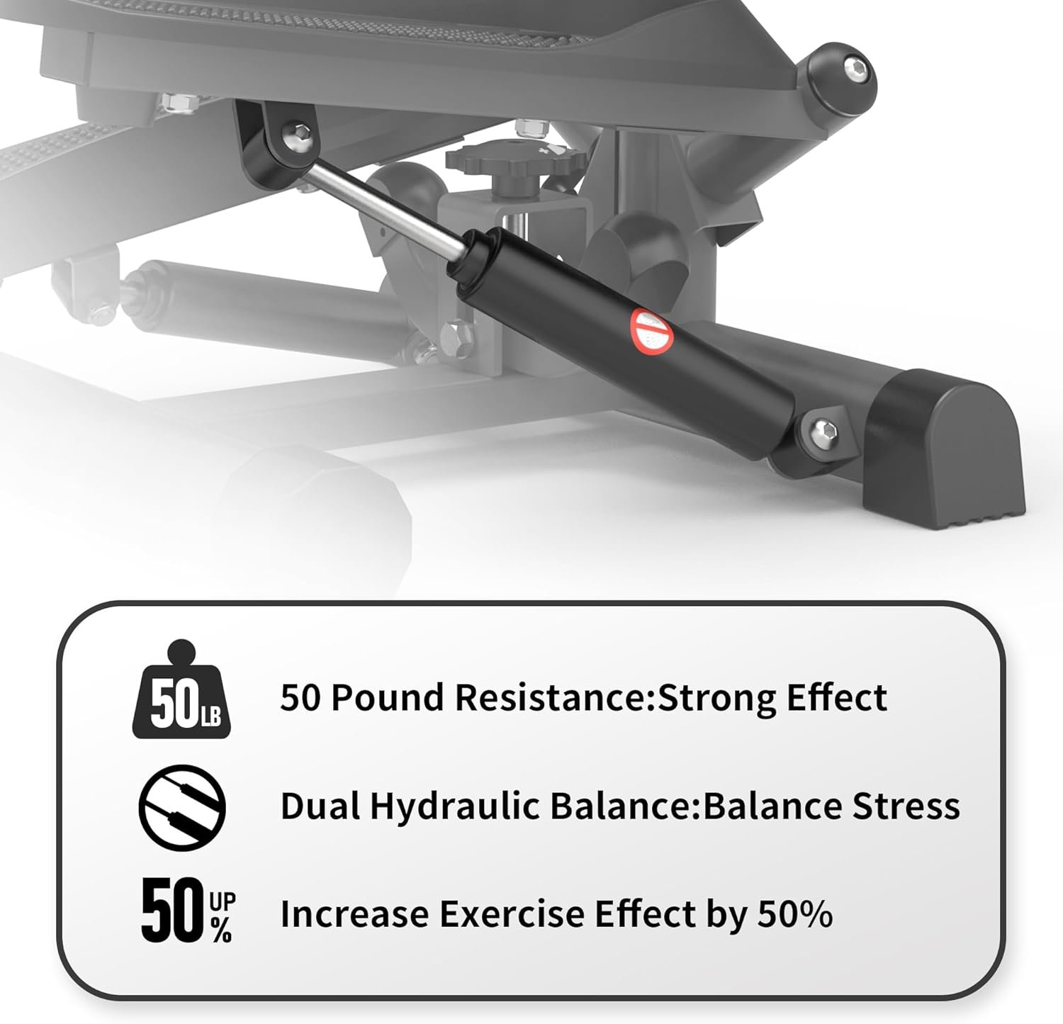 【Comfortable and Adjustable Cardio】 The twisting stepper features independent hydraulic pistons that allow you to manually alter the resistance level of your workout for smooth low impact stepping motions.