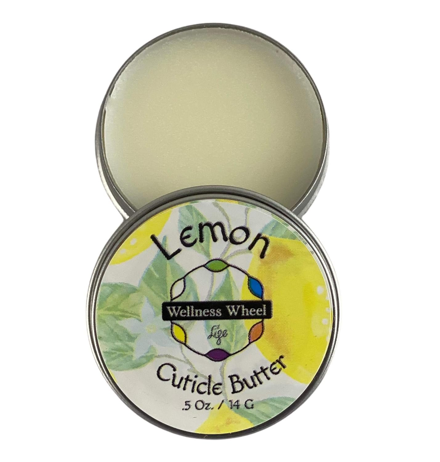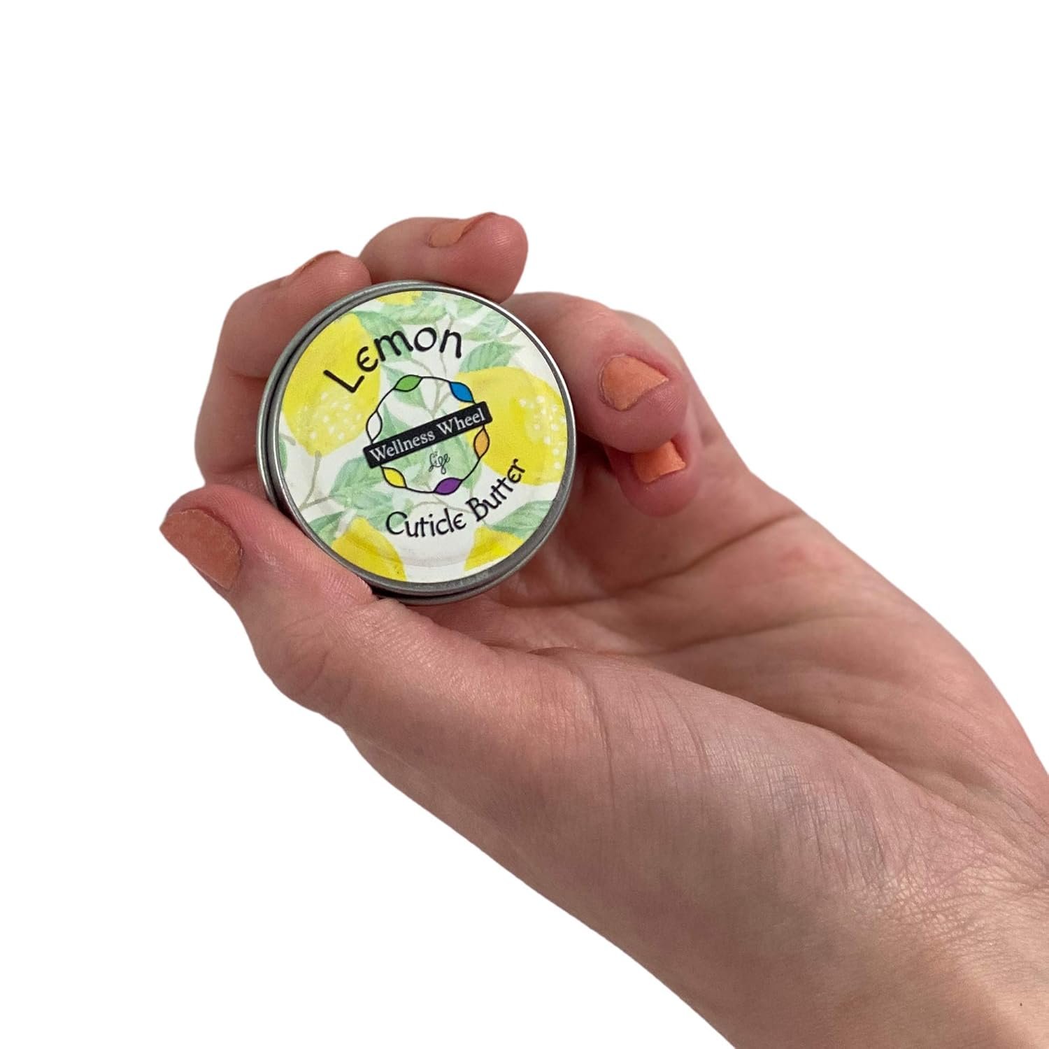 Cuticle Butter Cream in Lemon by Wellness Wheel Life is a perfect blend of Jojoba, Coconut, Shae Butter, Vitamin E, Bees Wax and essential oils.