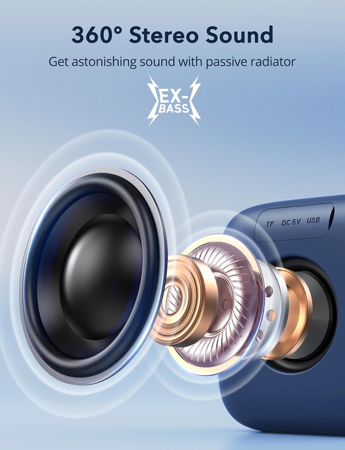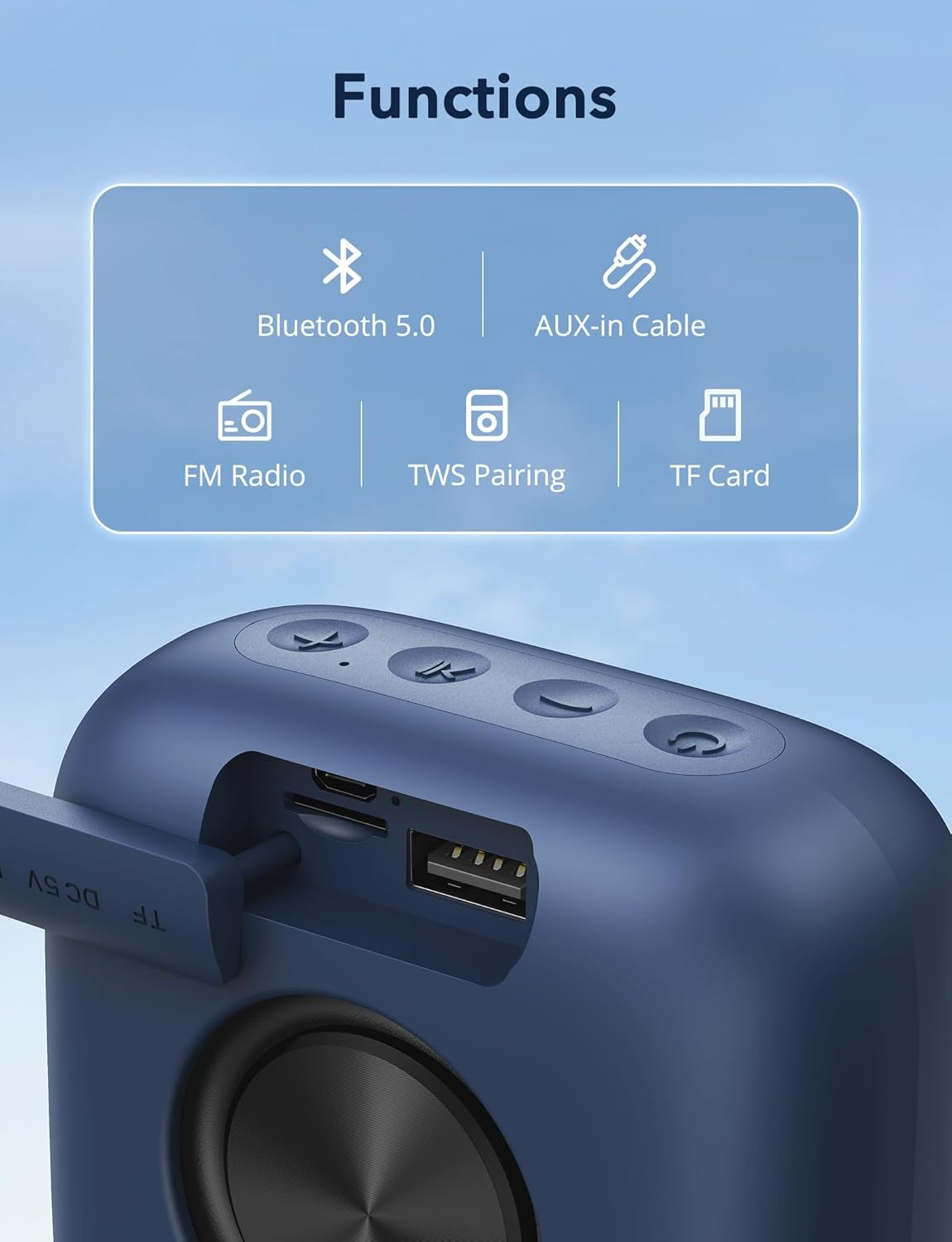 Bluetooth Speaker 5.0: Experience seamless, stable connectivity with your devices. Bluetooth 5.0 technology ensures quick pairing and a reliable connection, so you can enjoy uninterrupted music playback.