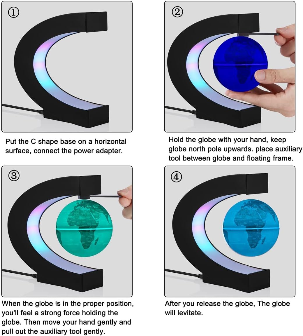 The gadget is simple to install. Globe lamp with stand, Easy to use. Once you get the globe levitating, just give it a little spin with your finger and it will be rotating by itself. Spinning quietly, no noise.