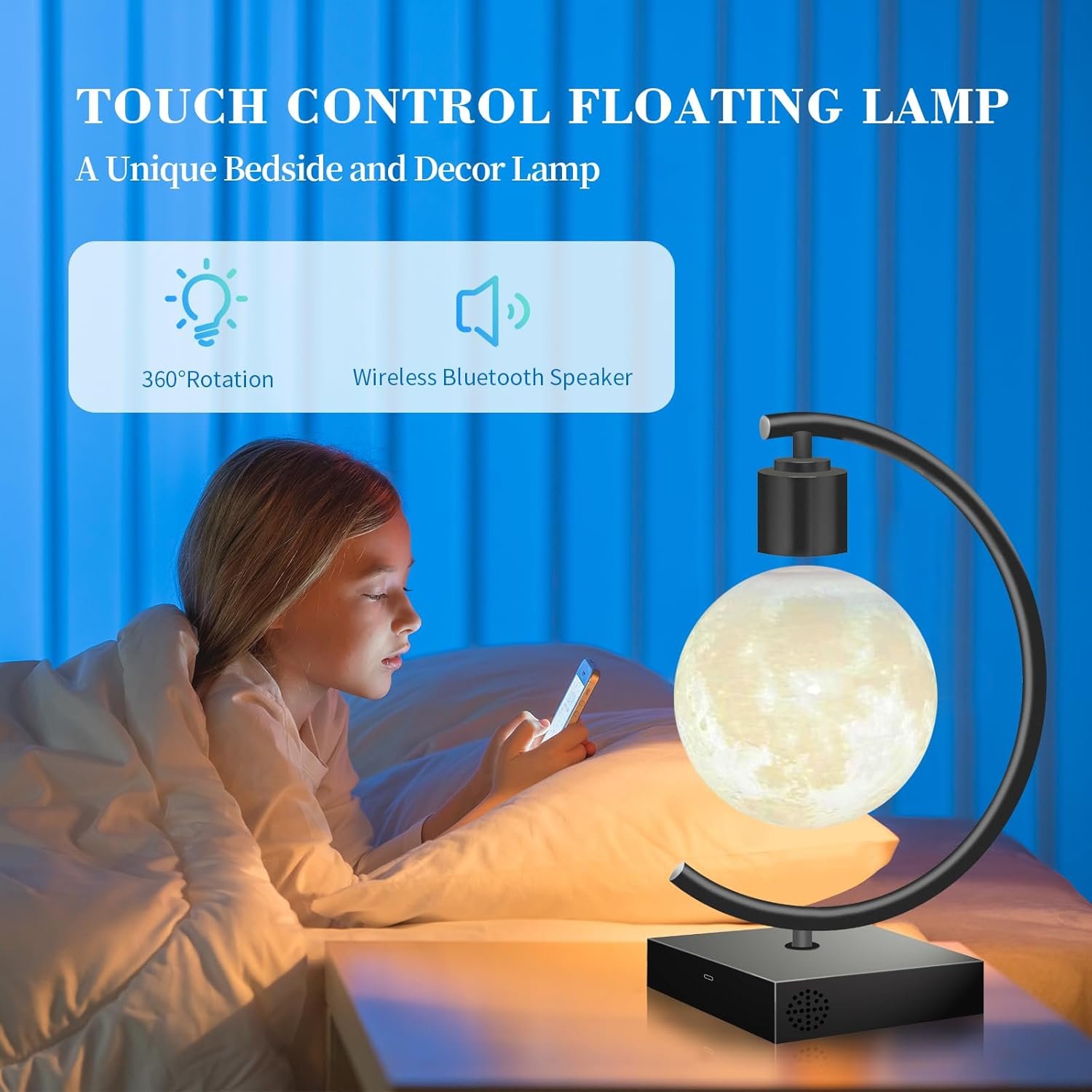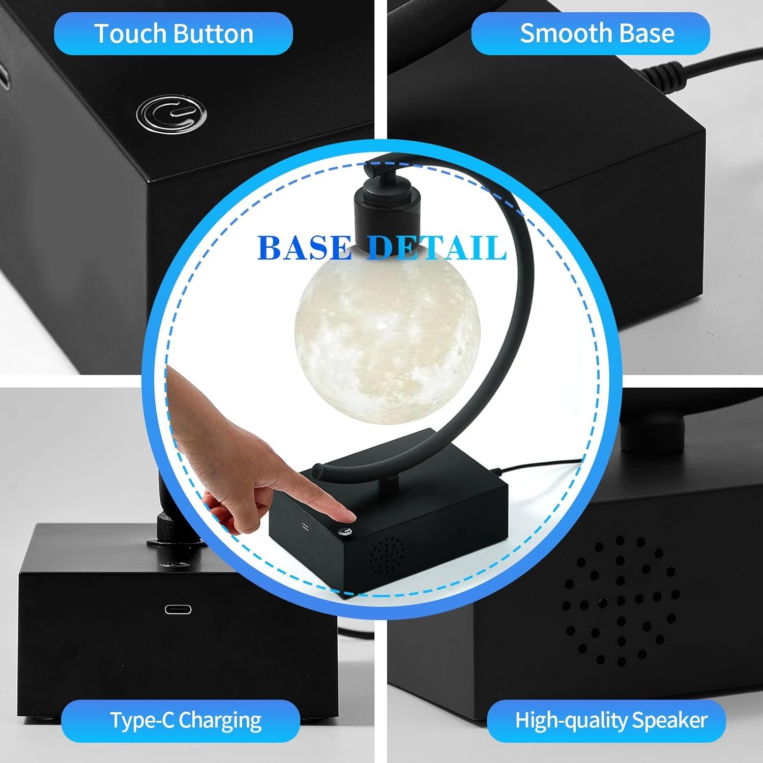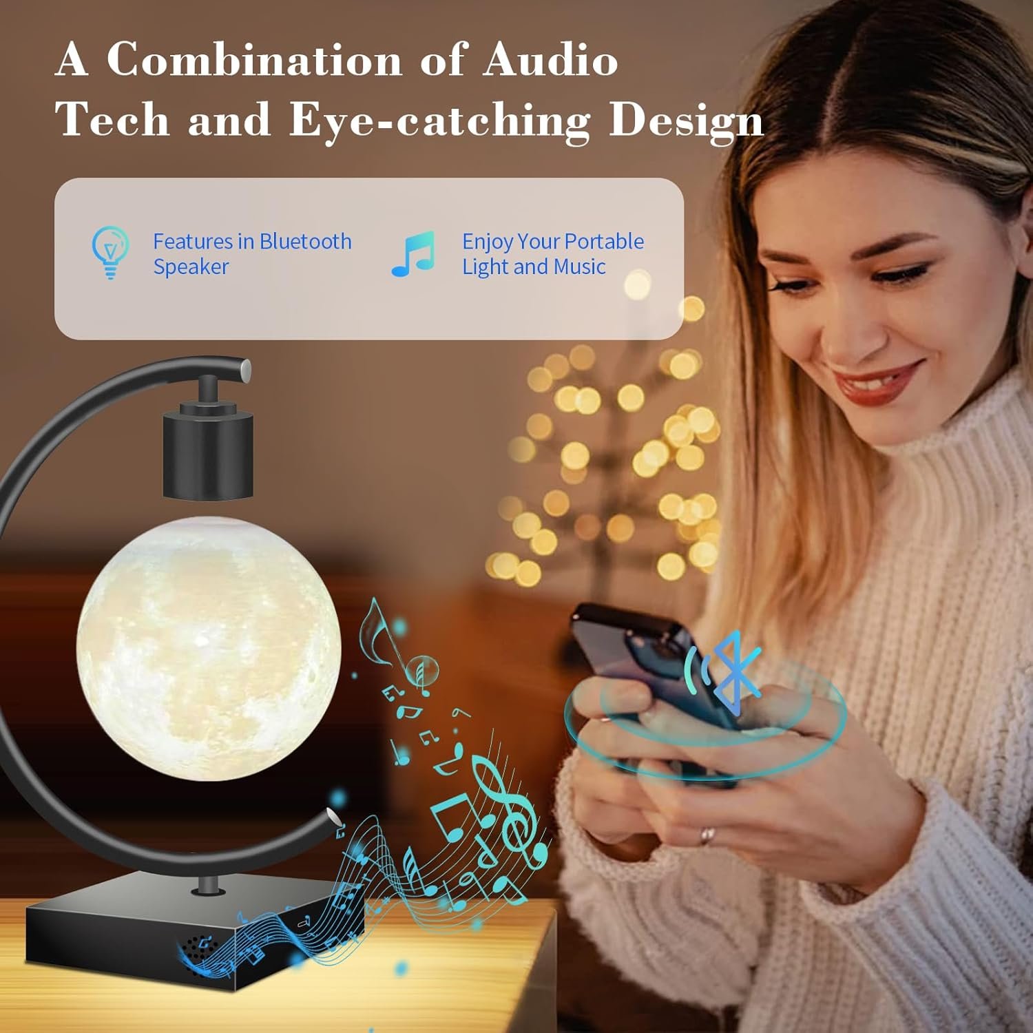 BLUETOOTH SPEAKER – The Levitating Moon with Bluetooth Speaker is a remarkable combination of modern audio tech and an eye-catching design. Boasting a powerful bass and clear sound, its moon-shaped housing provides an unforgettable listening experience.