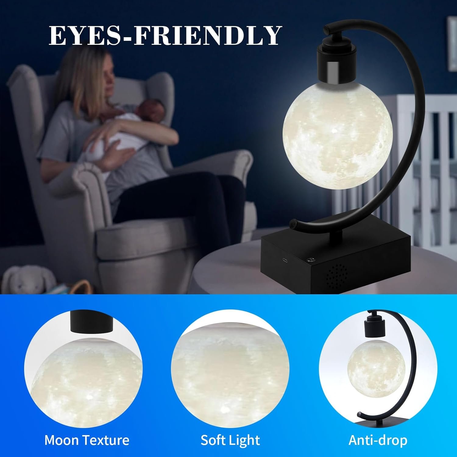 SECURE ANTI-DROP PROTECTION – Don’t worry about the safety of the Moon night light bulb; it is constructed from a sturdy, superior quality chrome frame and has a safety feature which magnetically fastens it to the upper magnet when the power is off, providing a secure anti-drop protection.