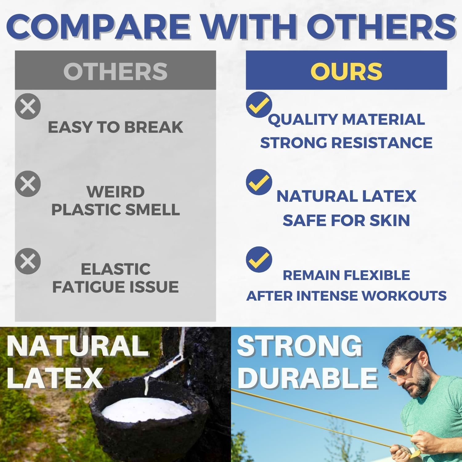 【DURABLE AND SAFE】:Our resistance bands are made of natural latex, they are non-irritating and harmless to skin, safe for all level users, due to quality raw material, they are very durable and flexible that can withstand extreme force, give you a big hand when doing intense workouts. Our resistance band can last for years, help you save money from buying others poor band.
