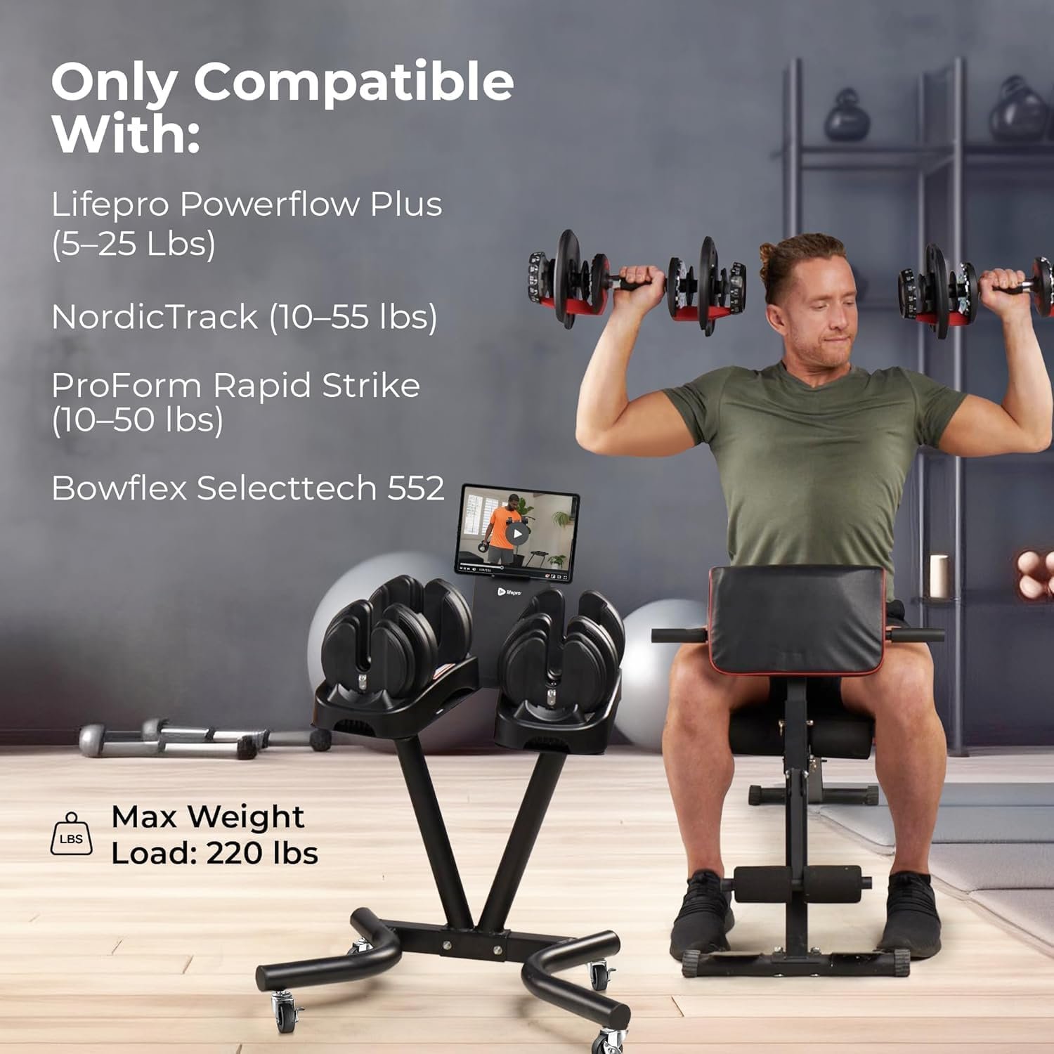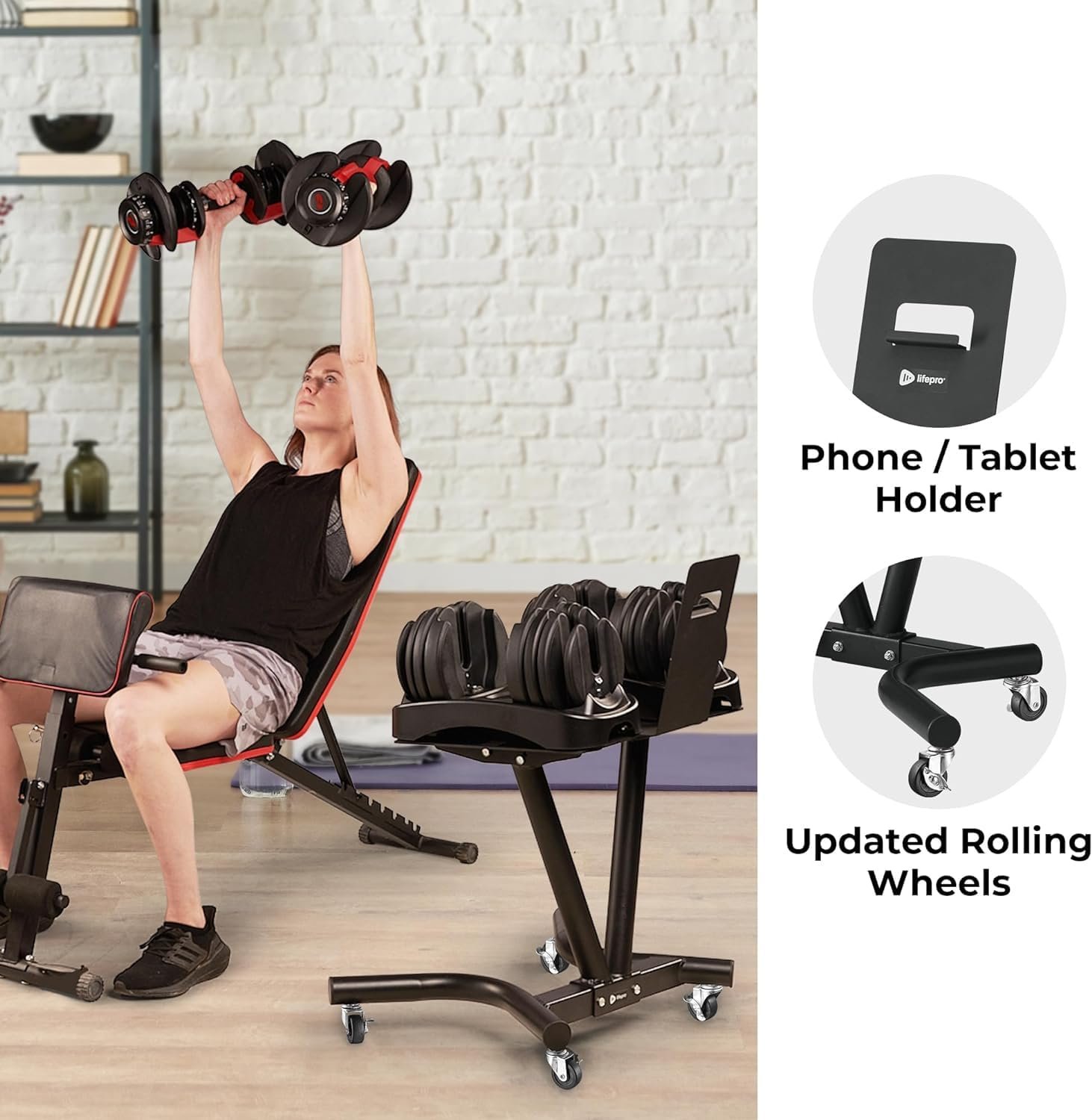 Lifepro Adjustable Dumbbell Stand for PowerFlow Pro & PowerFlow Max Adjustable Dumbbell Set – Adjustable Dumbbell Rack Stand with UPGRADED Metallic Caster of Wheels for Convenient & Safe Training
