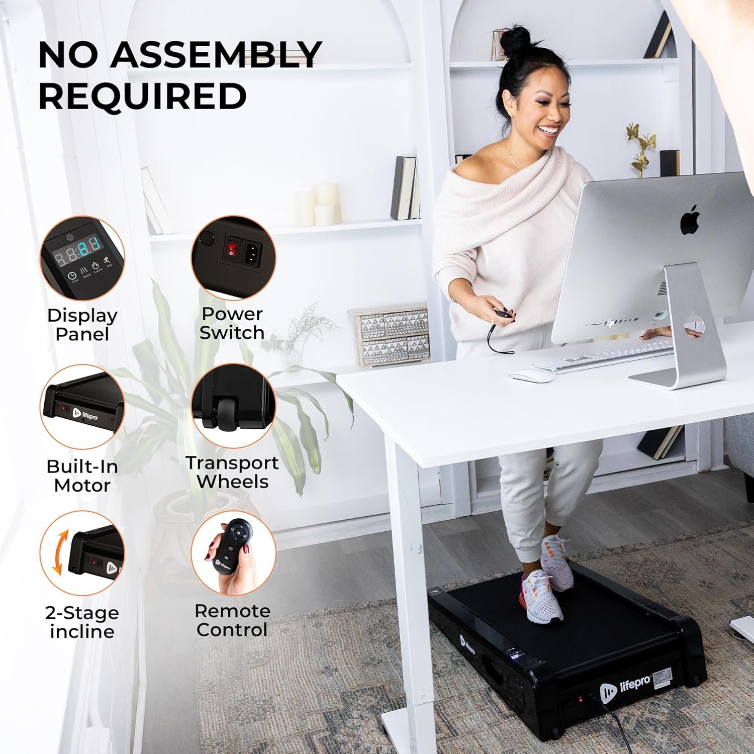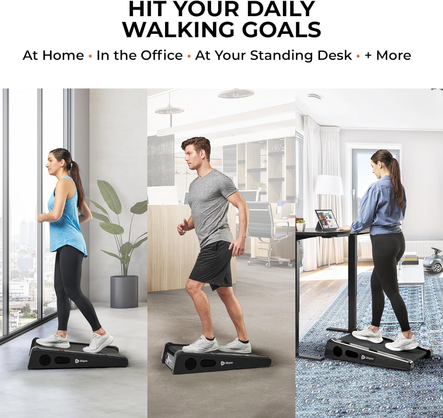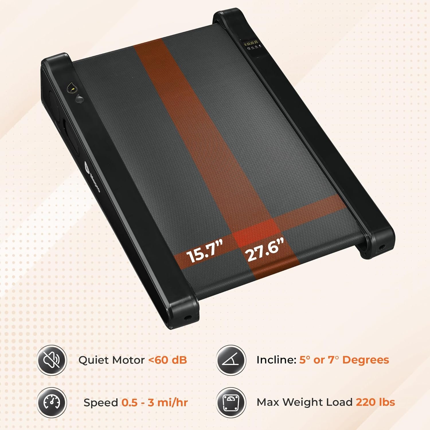 ADJUSTABLE SPEED: The standing desk treadmill walking pad has adjustable speeds between 0.5 & 3 mi/hr. The customizable speed settings make it suitable for users of all fitness levels. Track your workout with the easy to read display.