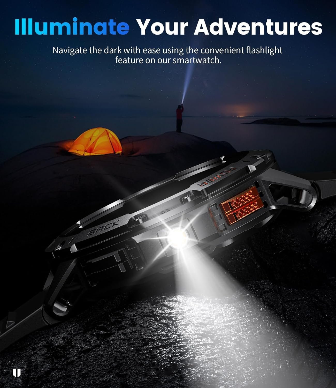 【Multifunctional & Built-in LED Light】: The smartwatch, featuring a bright LED light on the right side, is a handy tool for outdoor activities, nighttime adventures, or simply finding your way in the dark. In addition to Bluetooth calling and smart notifications, this smartwatch also offers blood oxygen monitoring, heart rate tracking, sleep analysis, and calorie consumption tracking. It even includes music playback, making it the perfect assistant for your daily life. NOTE:Please ensure that the app ”FitCloudPro“ is allowed to run in the background (your phone won’t automatically close the app), so as to ensure long-term connectivity between your phone and the smartwatch.