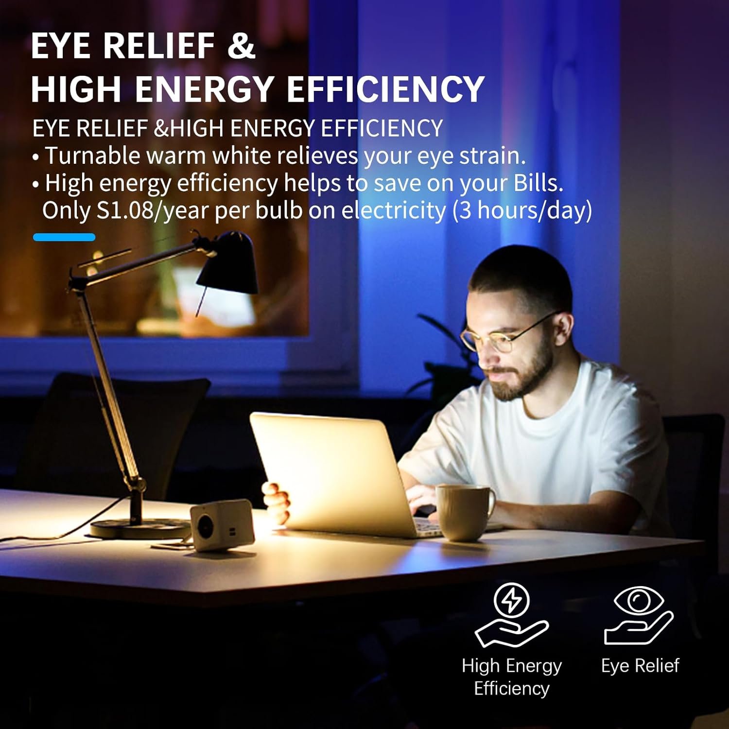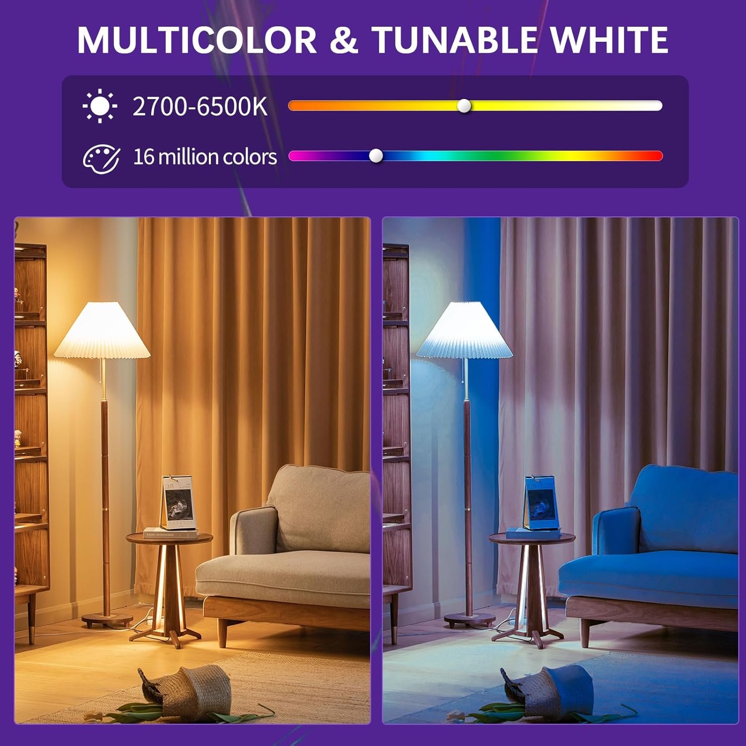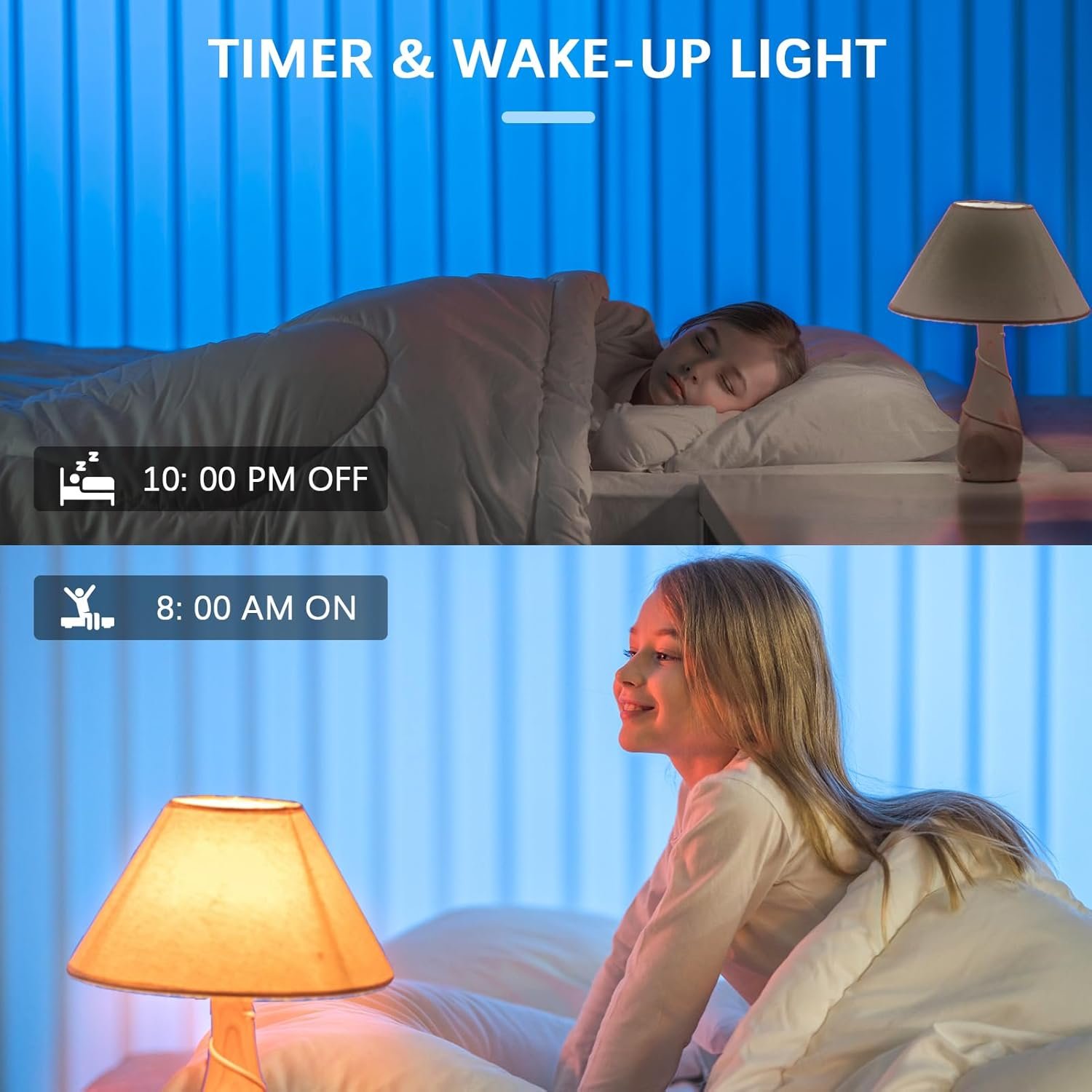 💡𝐓𝐢𝐦𝐞𝐫 & 𝐓𝐮𝐧𝐚𝐛𝐥𝐞 𝐖𝐡𝐢𝐭𝐞 – Schedule your smart bulbs to turn on/off on specific days and times to simplify your daily routines. The 3 primary types of tunable white (from 2700K – 6500K range), warm white, natural white, and daylight are ideal for wake-up light, reading, working, or applying makeup. (The smart bulbs do not work with dimmer switches.)