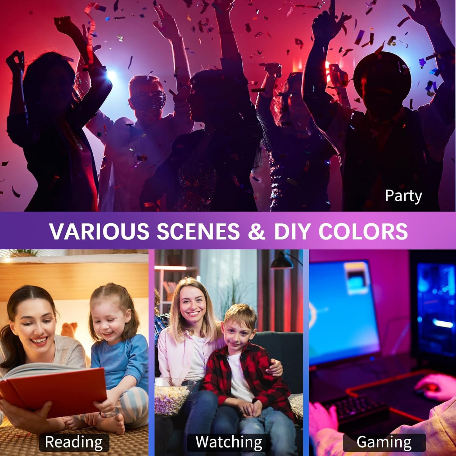 💡𝐂𝐨𝐥𝐨𝐫-𝐂𝐡𝐚𝐧𝐠𝐢𝐧𝐠 𝐄𝐟𝐟𝐞𝐜𝐭𝐬 & 𝐕𝐚𝐫𝐢𝐨𝐮𝐬 𝐒𝐜𝐞𝐧𝐞𝐬 – Caupureye smart light bulbs have millions of colors to choose from and various scenes to meet your daily needs. you can customize the RGB light bulbs’ color, brightness, speed, and glide effects to create your personalized or special holiday scenes. Moreover, Caupureye smart light bulbs’ high CRI (>90) will greatly increase the color accuracy.