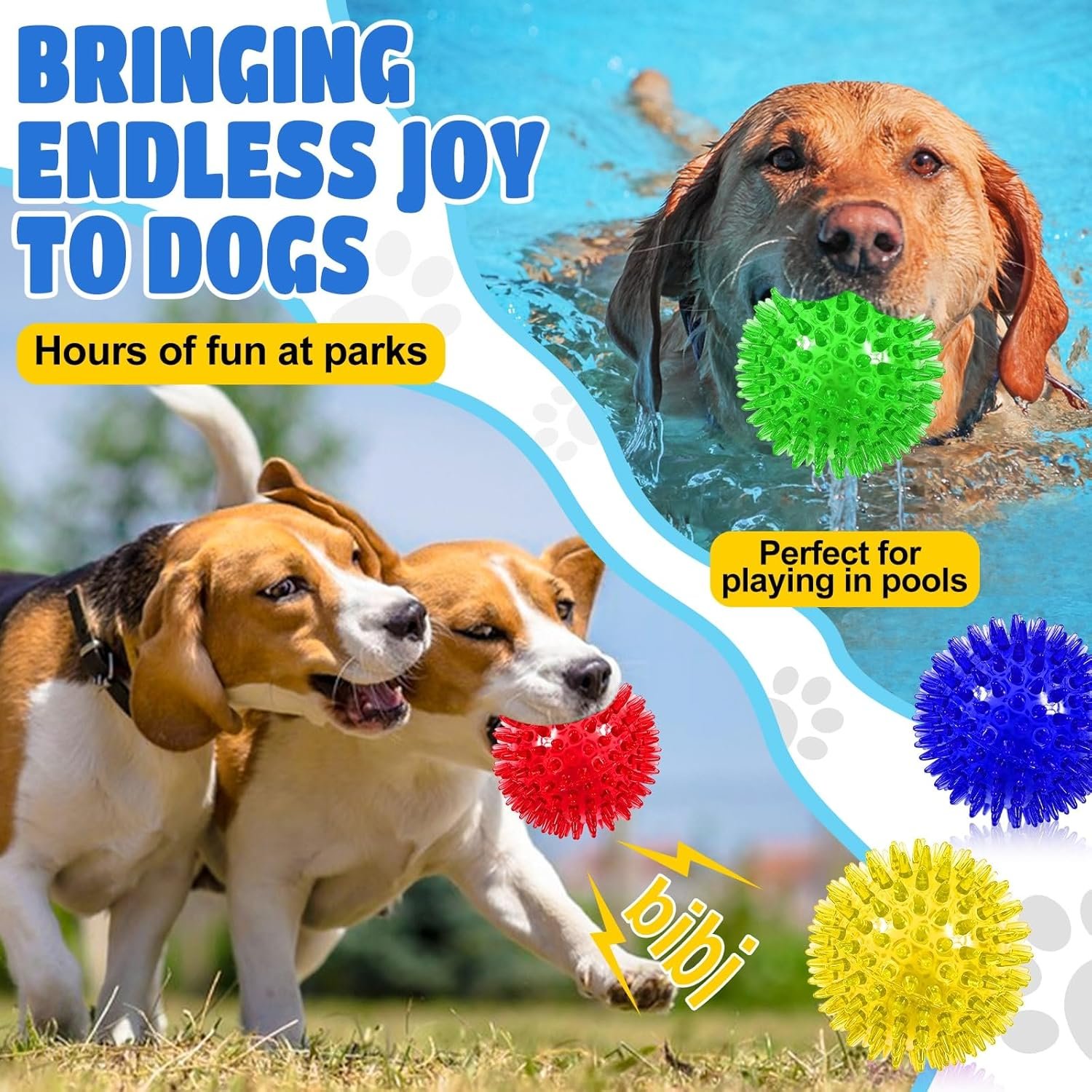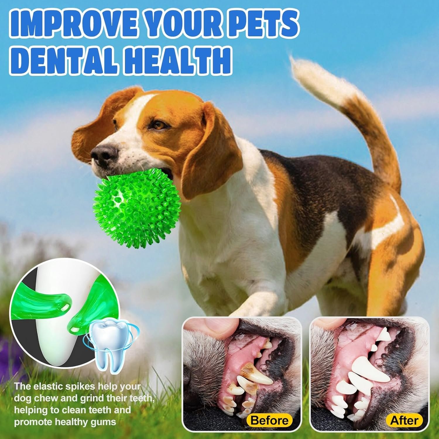 🎆HIGH-QUALITY & SAFE MATERIALS : Dog chew toys balls are made from food- grade TPR rubber material, BPA-free, odorless non-toxic, BPA free. Elastic spikes on the surface of the pet toys encourage your dog to chew and grind while promoting healthy gums. The choke-free design allows your pets to play and chase safely indoors and outdoors.