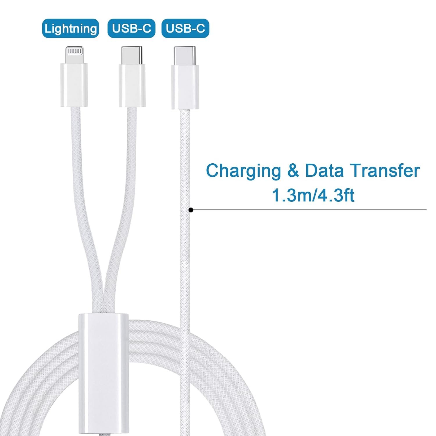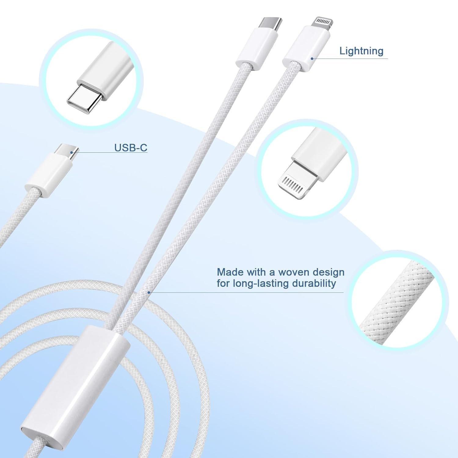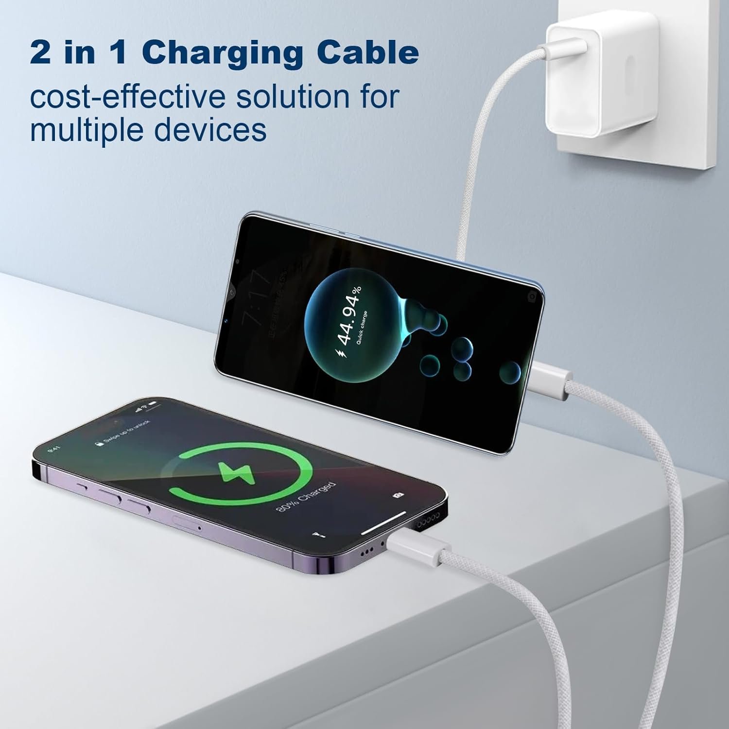 Widely Compatibility: Dual Charging connectors. USBC to Lightning cable for Apple iPhone 14,iphone 14 Plus,iPhone 14 Pro iPhone 14 Pro Max,iPhone 13, iPhone 13 Mini, iPhone 13 Pro, iPhone 13 Pro Max, iPhone 12, iPhone 12 Mini, iPhone 12 Pro, iPhone 12 Pro Max, iPhone 11, iPhone 11 Pro, iPhone 11 Pro Max, iPhone X, iPhone XR, iPhone XS, iPhone XS Max, iPhone 8, iPhone 8 Plus, iPhone 7, iPhone 7 Plus, iPhone 6s, iPhone 6s Plus, iPhone 6, iPhone 6 Plus, iPhone SE 2020, iPhone 5S, iPad Air, iPad mini, iPad Pro, iPod, Airpods and more.